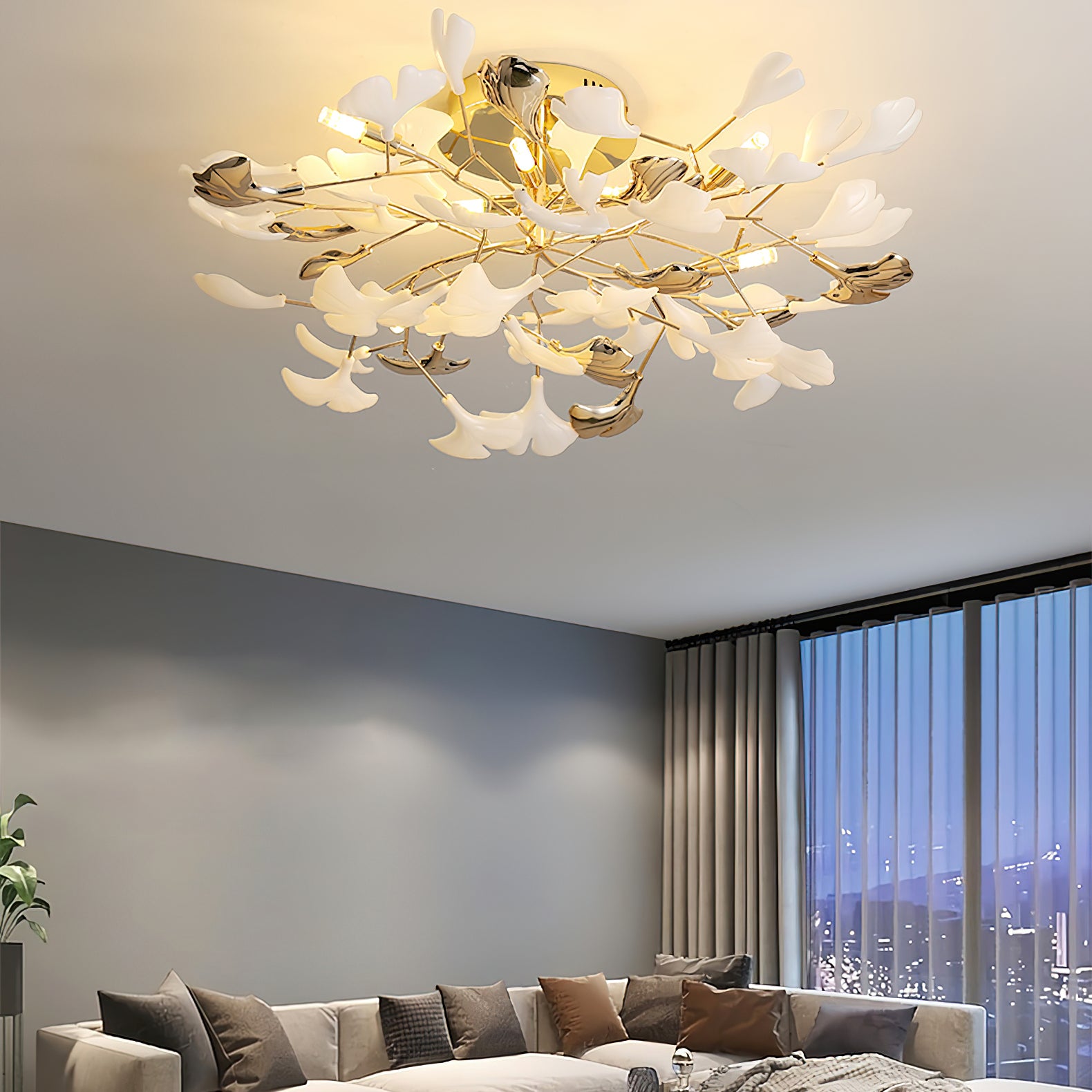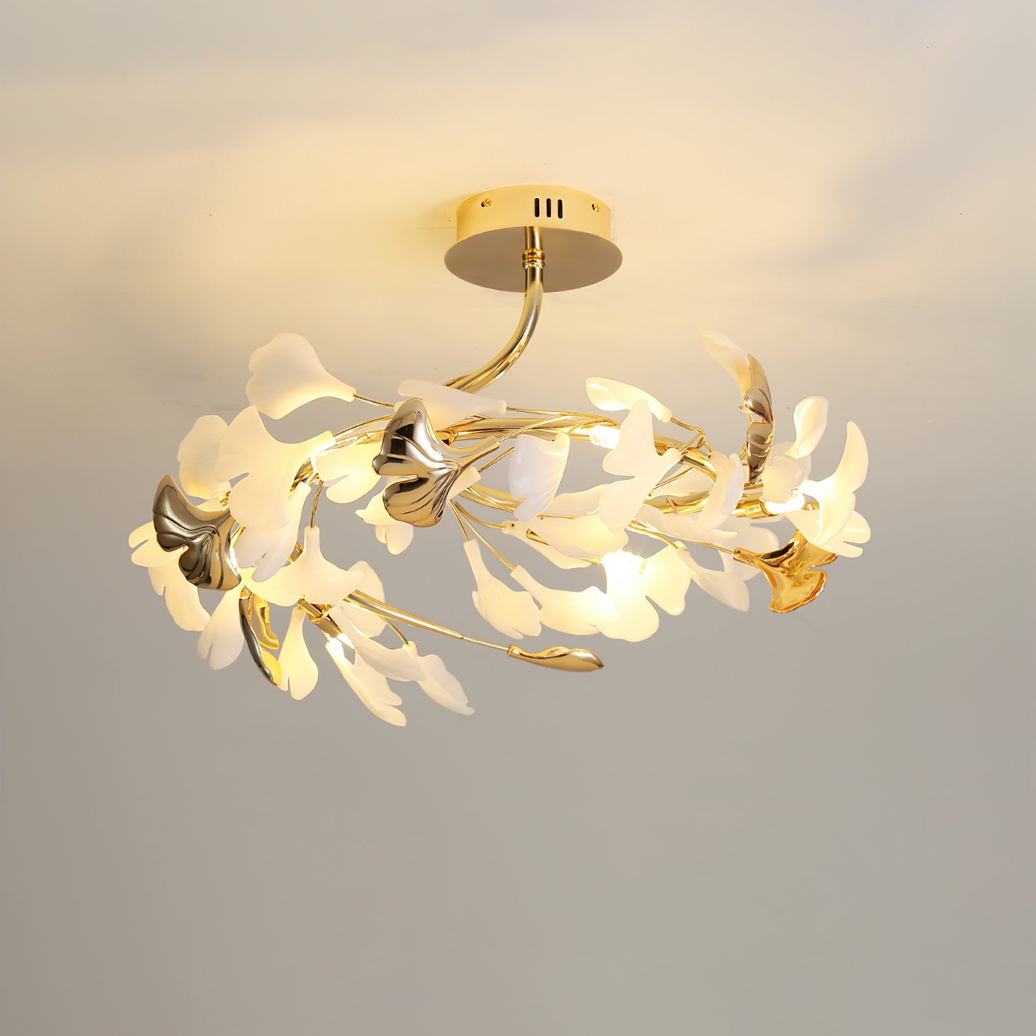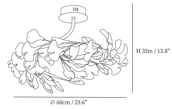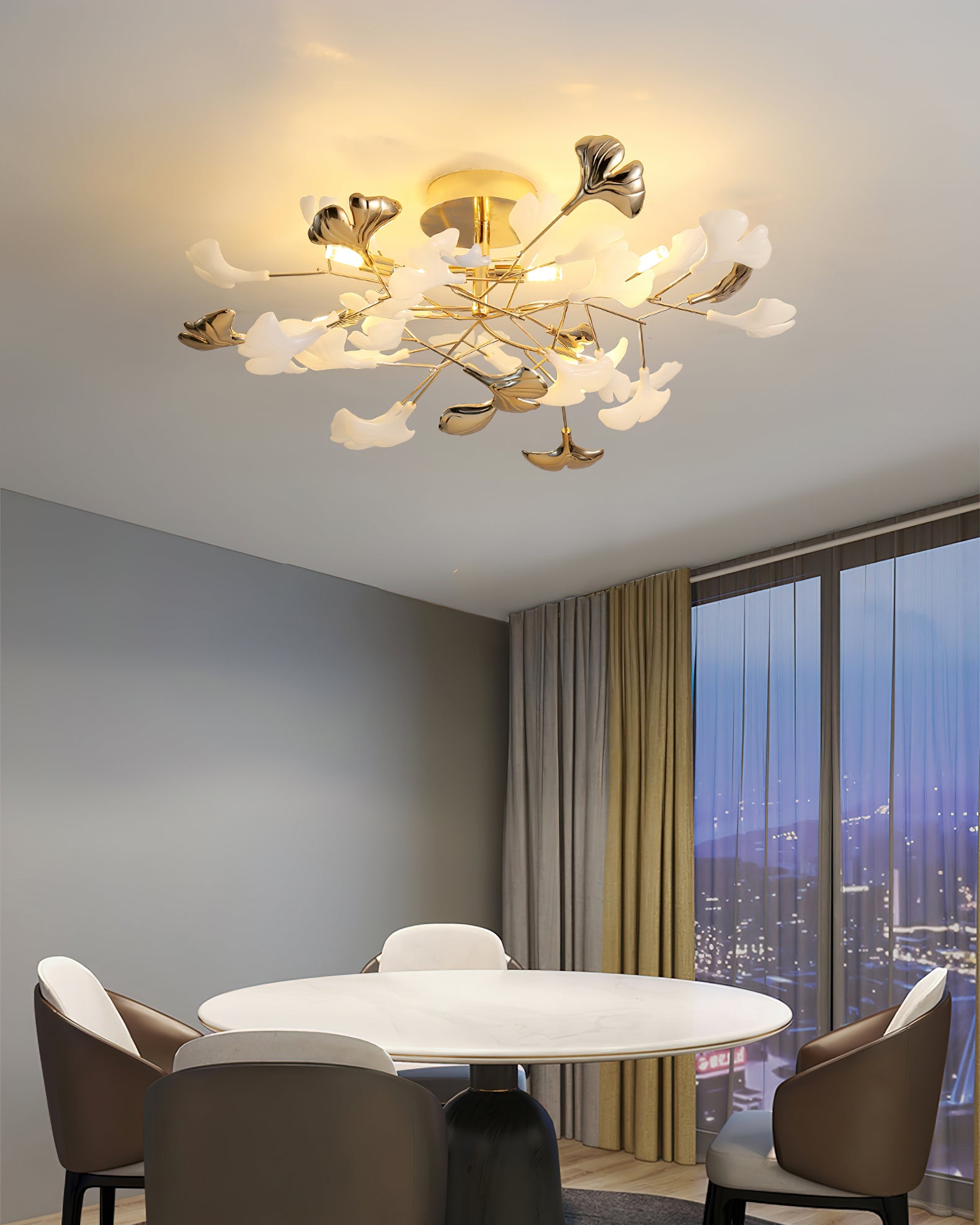 Gingko Rotating Ceiling Lamp on luova ginkgo-lehtisuunnittelu, joka hylkää kaikki säännöt ja mallit jatkuvan edistymisen ja tutkimisen puolesta. Sen sulavalinjainen rakenne eliminoi kaikki monimutkaiset tai ylimääräiset osat ja tuo kotiisi yksinkertaisuuden ja romantiikkaa. Pehmeä ja mukava valaisin on ihanteellinen lisä jokaiseen kotiin.