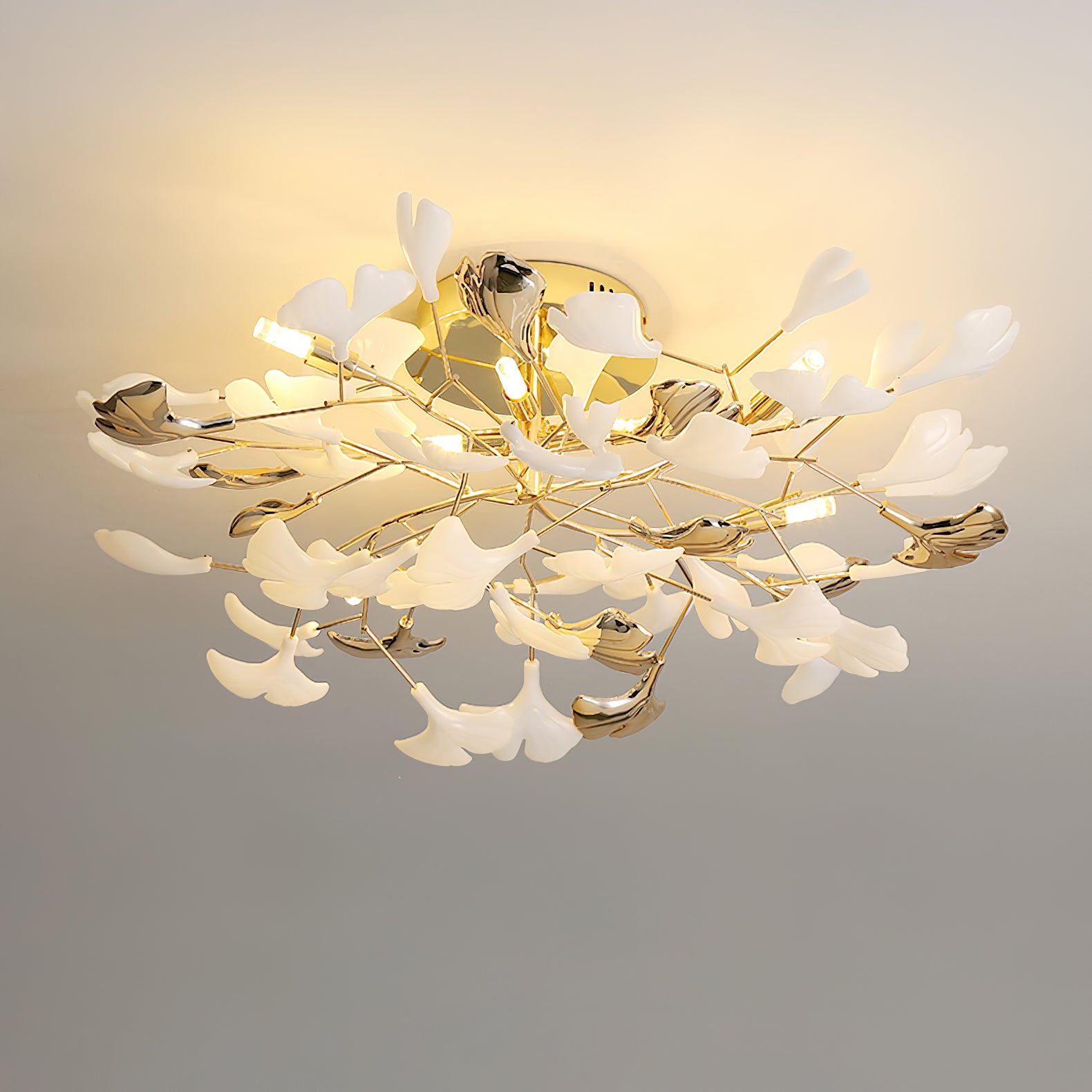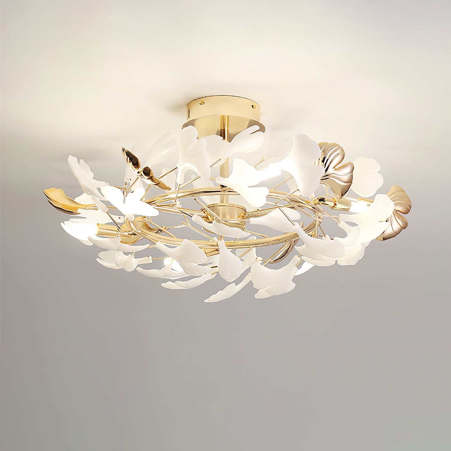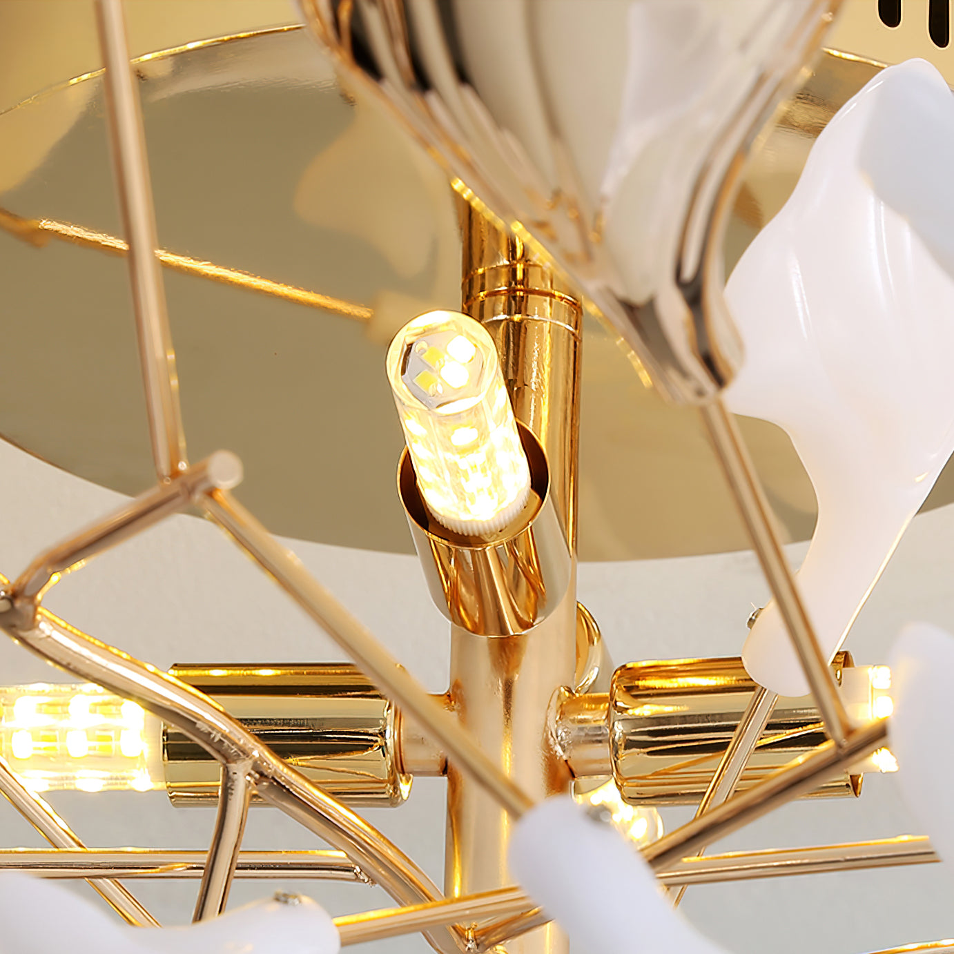 Gingko Rotating Ceiling Lamp on luova ginkgo-lehtisuunnittelu, joka hylkää kaikki säännöt ja mallit jatkuvan edistymisen ja tutkimisen puolesta. Sen sulavalinjainen rakenne eliminoi kaikki monimutkaiset tai ylimääräiset osat ja tuo kotiisi yksinkertaisuuden ja romantiikkaa. Pehmeä ja mukava valaisin on ihanteellinen lisä jokaiseen kotiin.