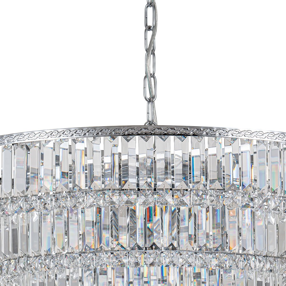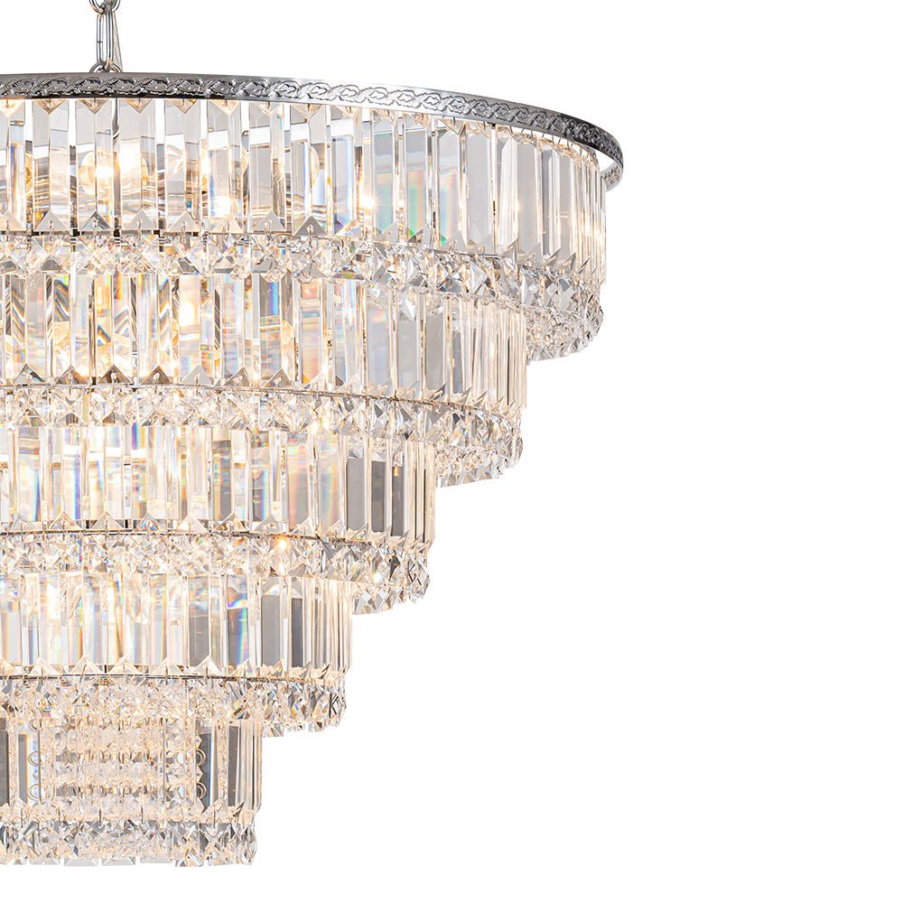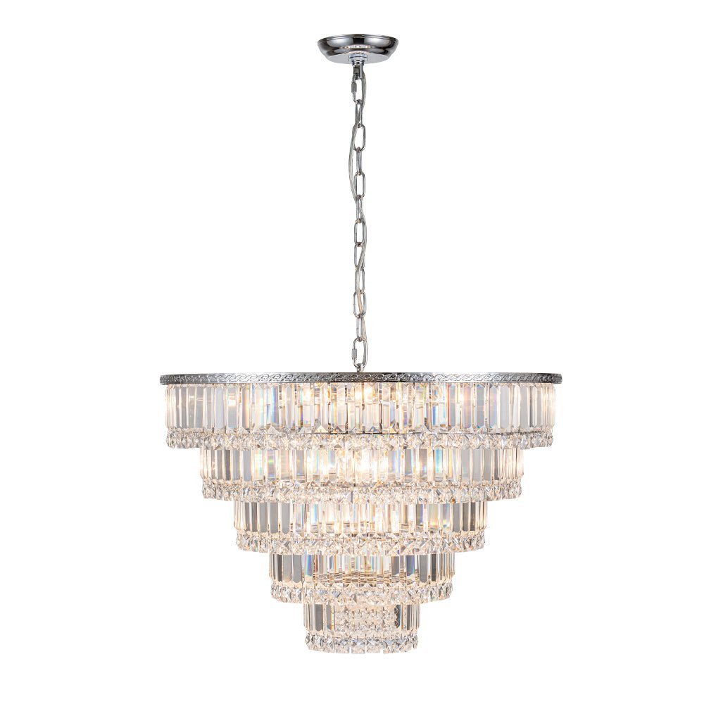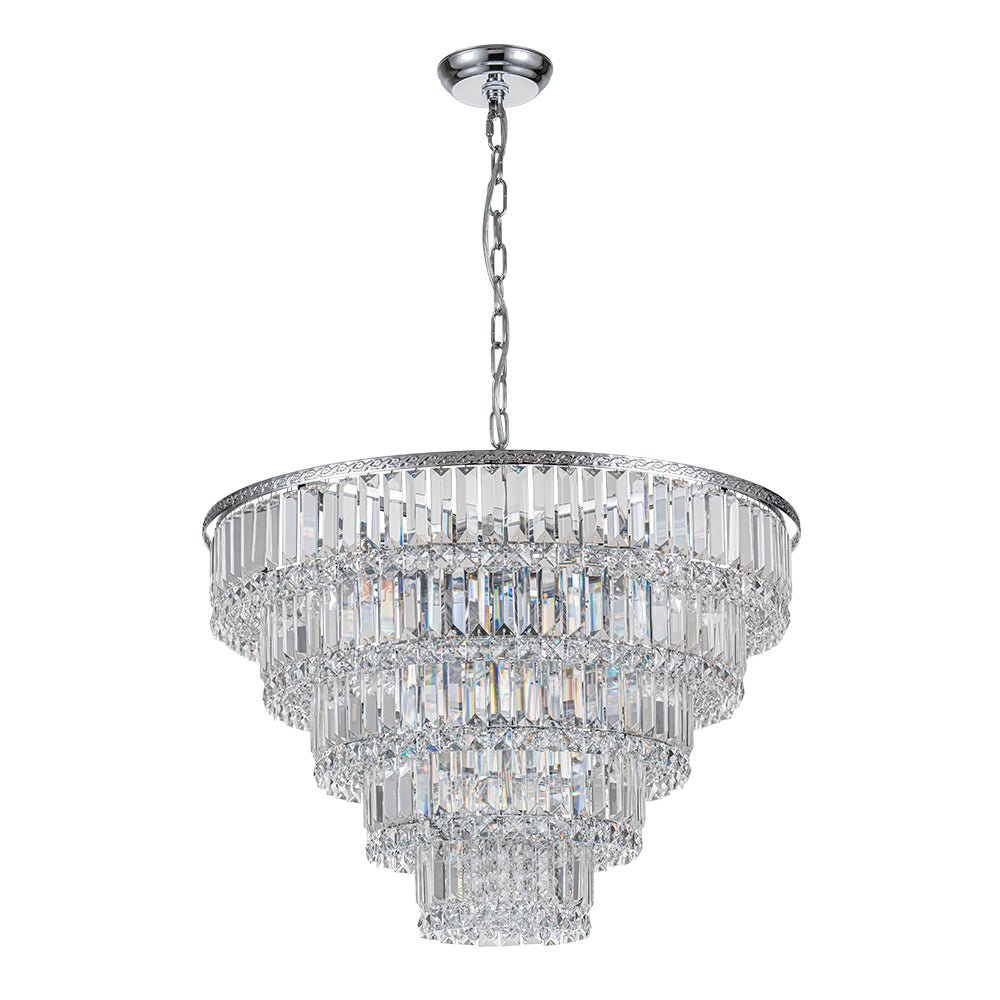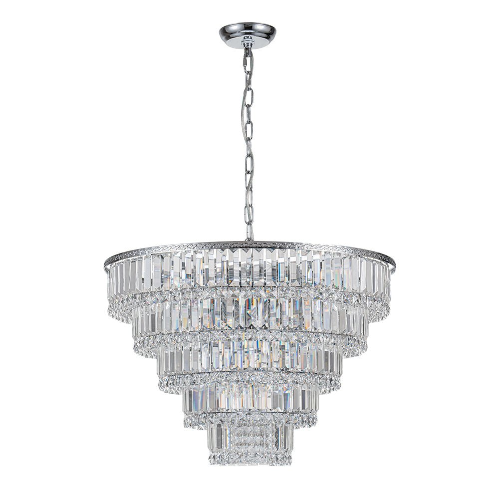 Seitsemäntoista valoa • Viisi kerrosta • Lasikristalli • Kromiviimeistely • E12 kynttelikköpolttimot (ei sisälly) • Kiinteä • UL-listattu/CE-listattu