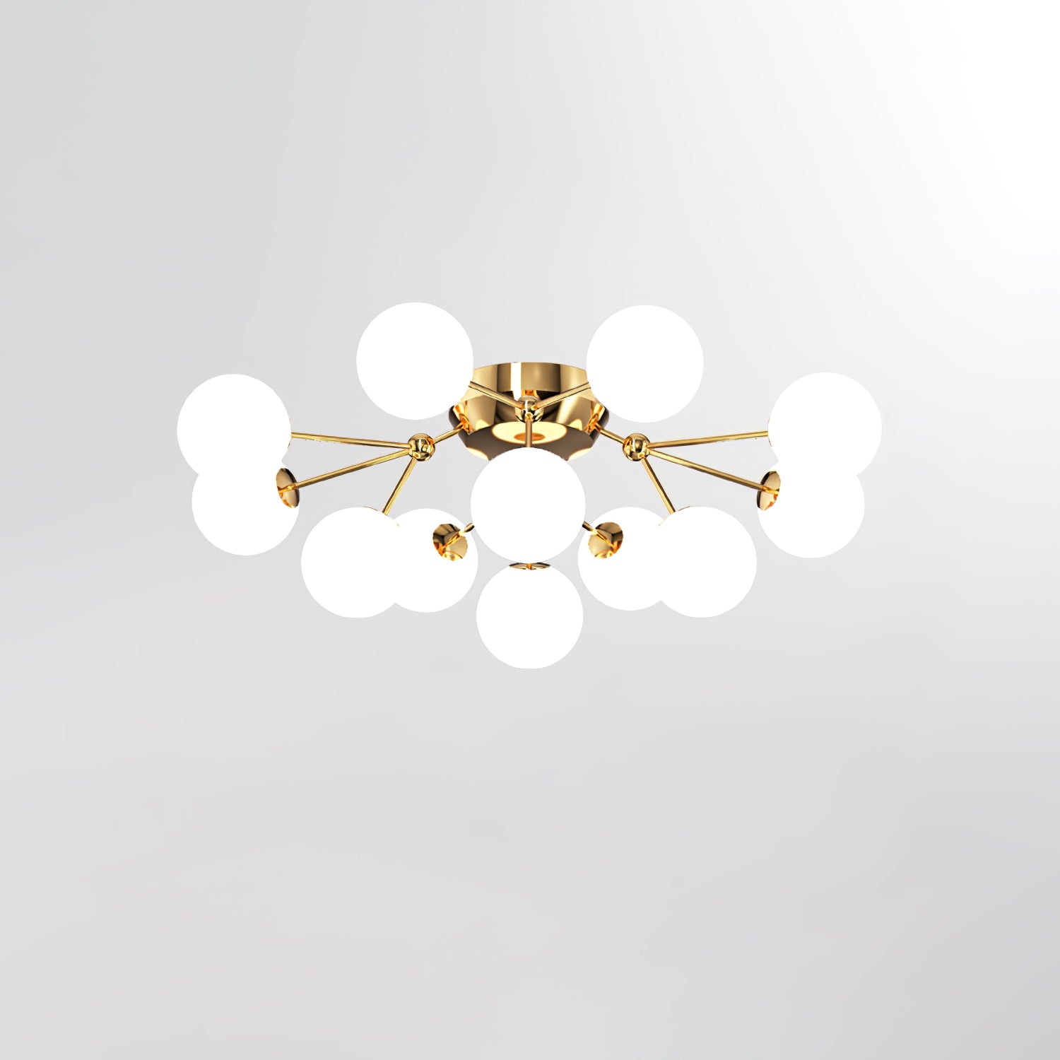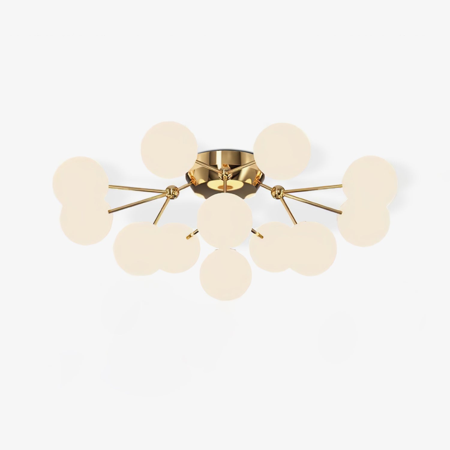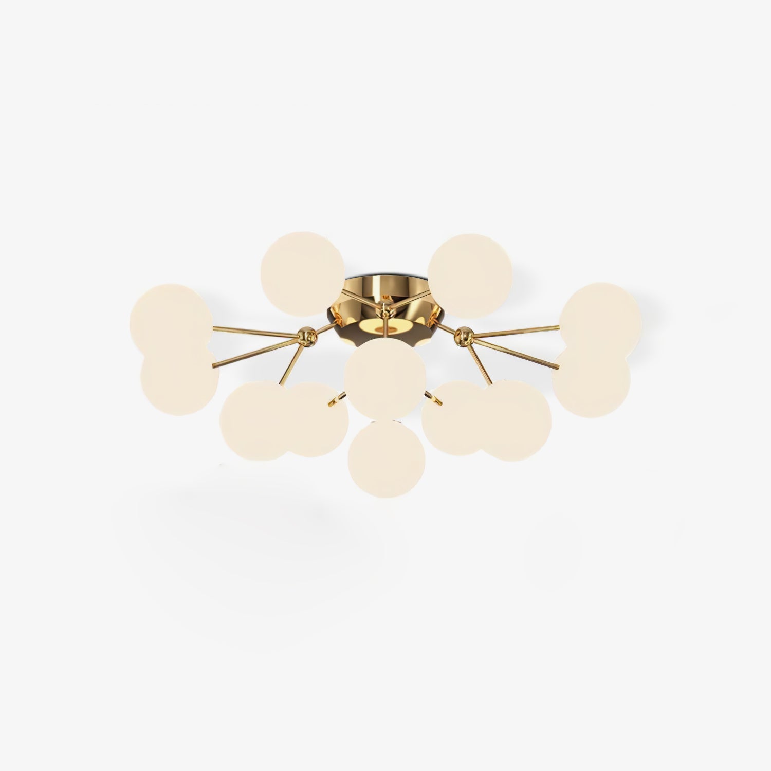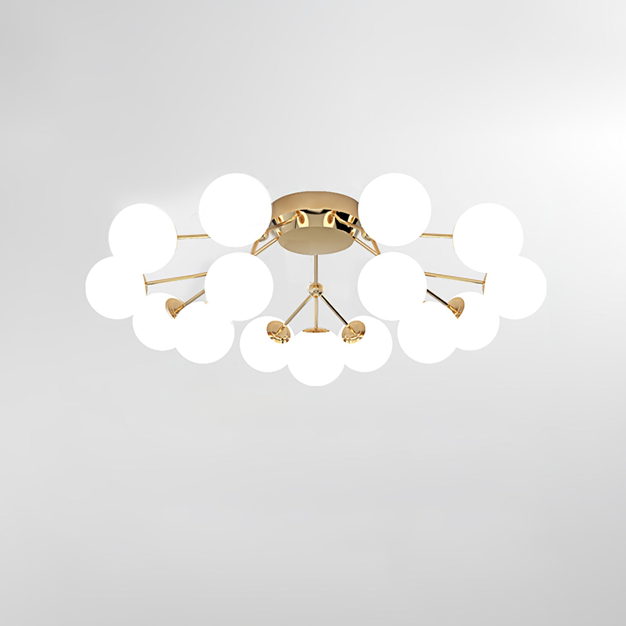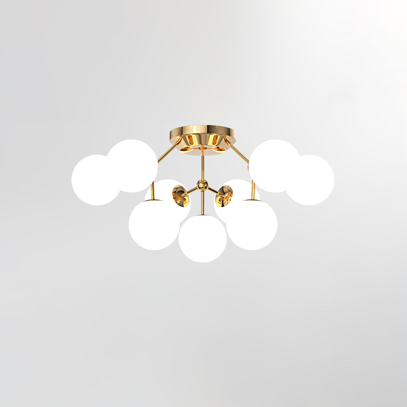 Tämä moderni Glass Balls Cluster -kattolamppu tuo tyylikkään ilmeen mihin tahansa tilaan. Sen geometrinen klusterimuotoilu koostuu valkoisista lasipalloista, jotka säteilevät pehmeää valaistusta, joka on täydellinen parantamaan minkä tahansa huoneen tunnelmaa. Siinä on myös yksinkertainen, muodikas tukirakenne helppoa asennusta varten.