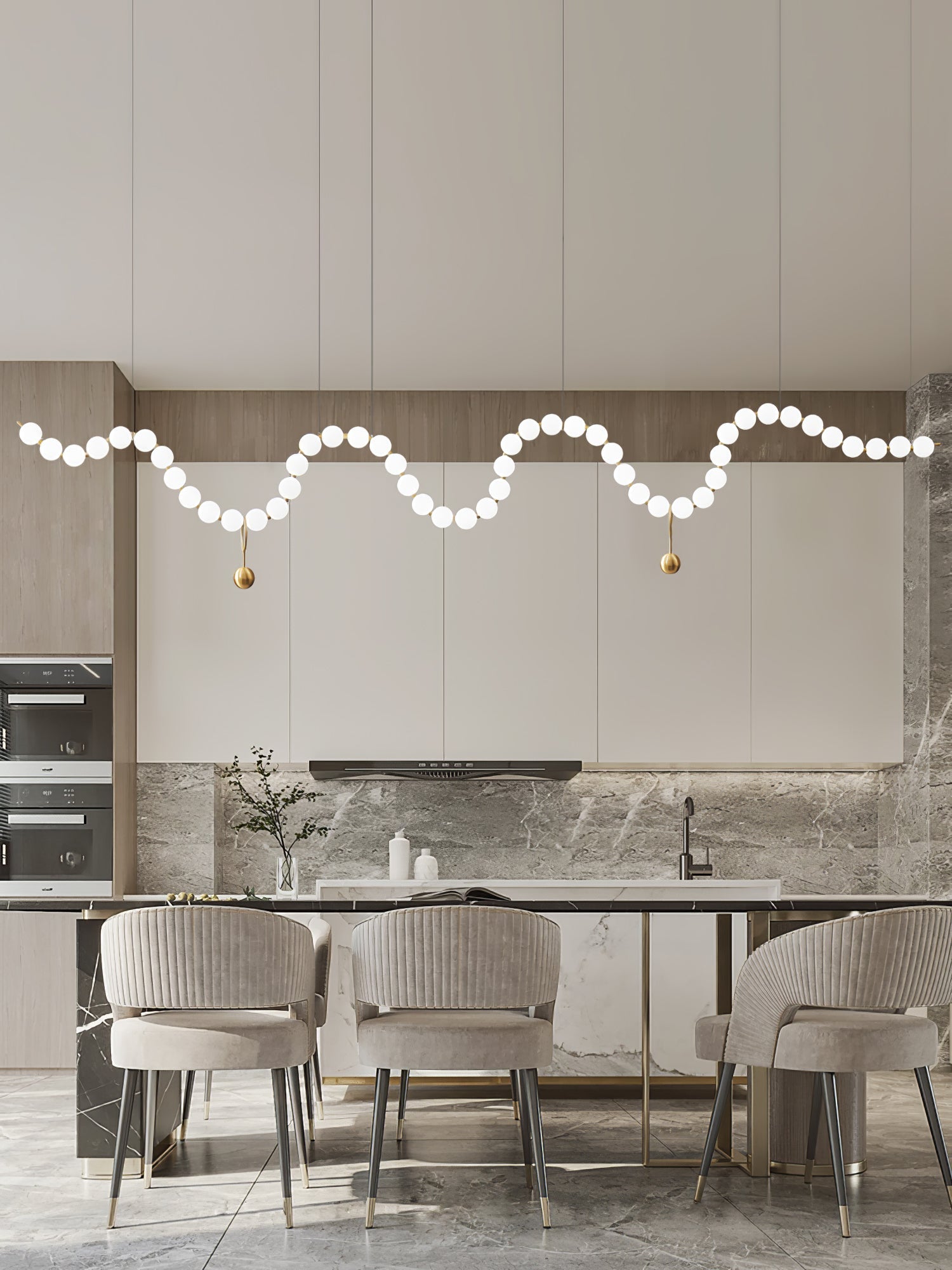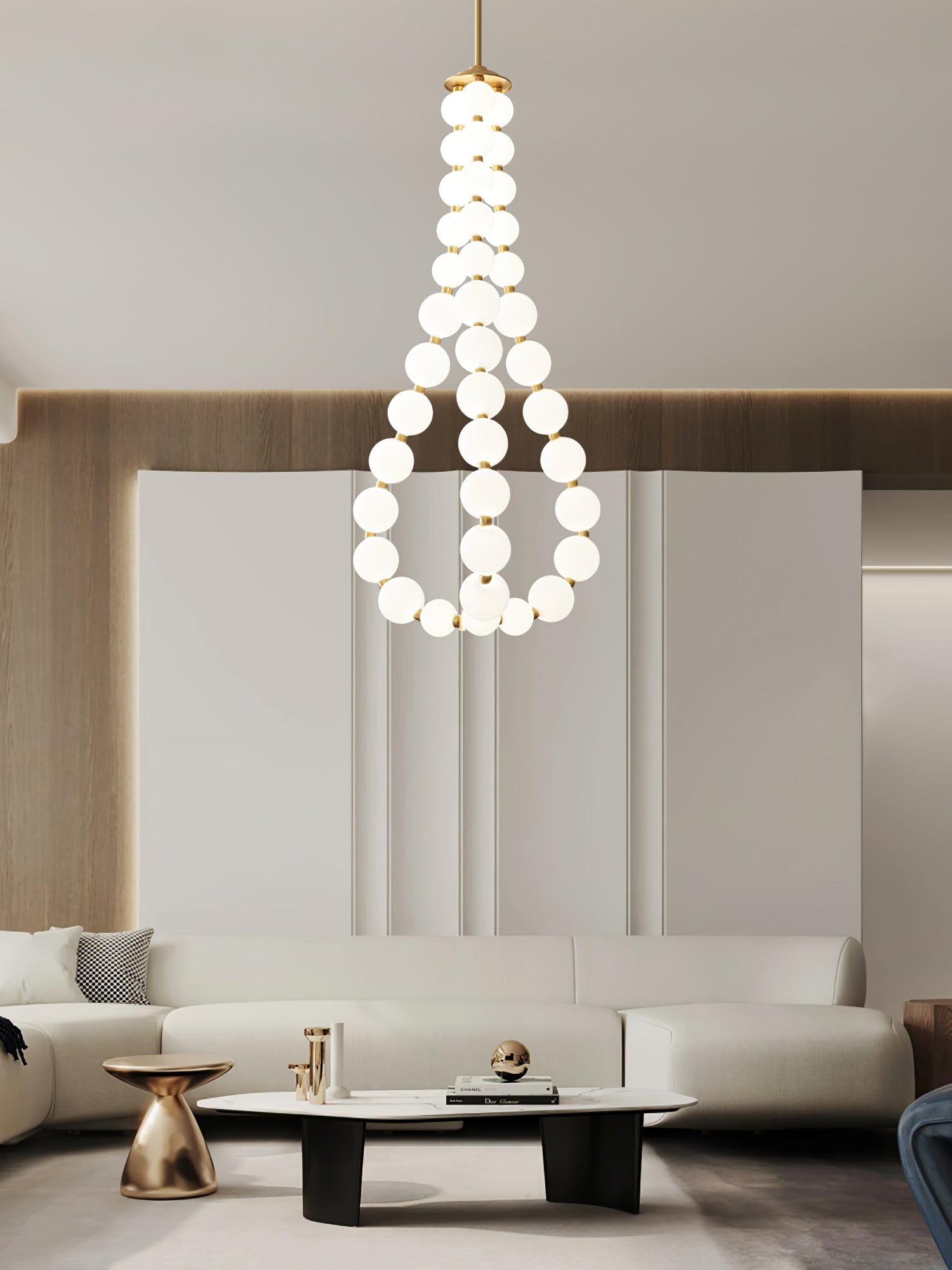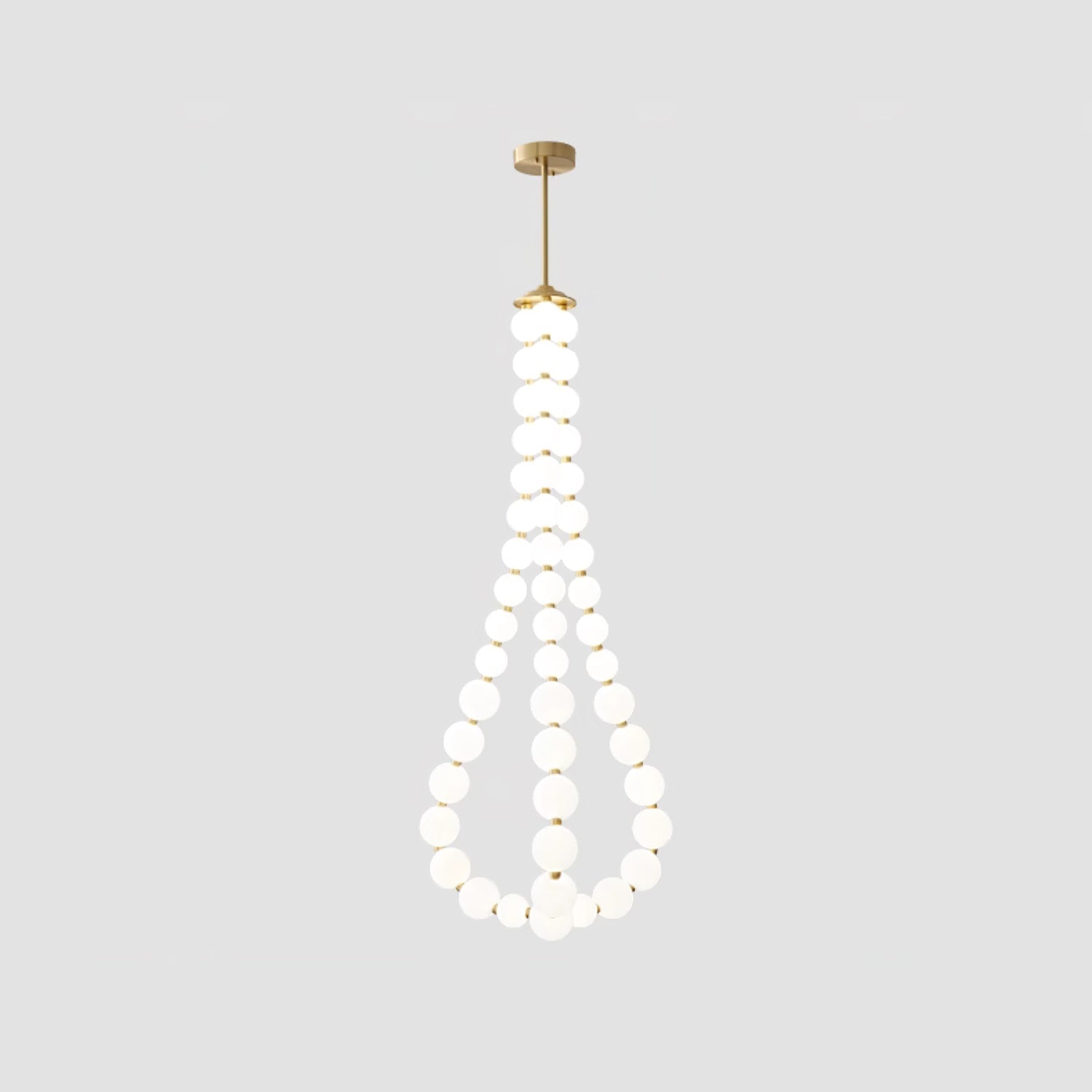 Tämä tyylikäs lasihelmikaulakoru kattokruunu valaisee minkä tahansa tilan messingistä valmistetulla pohjalla ja valkoisilla lasipalloilla. Sen ainutlaatuinen muotoilu herättää ihailua ja huomion yhdistämällä erottuvan tyylin yleismaailmalliseen ja ajattomaan vetovoimaan. Sen ainutlaatuiset valaistusmuodot korostavat kotisi sisustusta ja luovat lämpimän, kodikkaan tunnelman tapaamisiin ja laatuaikaa perheen kanssa.
