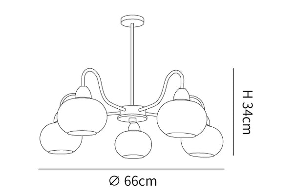 5 Lamppujen koko: Halkaisija 66 cm x K 34 cm / ∅ 26,0″ x K 13,4″