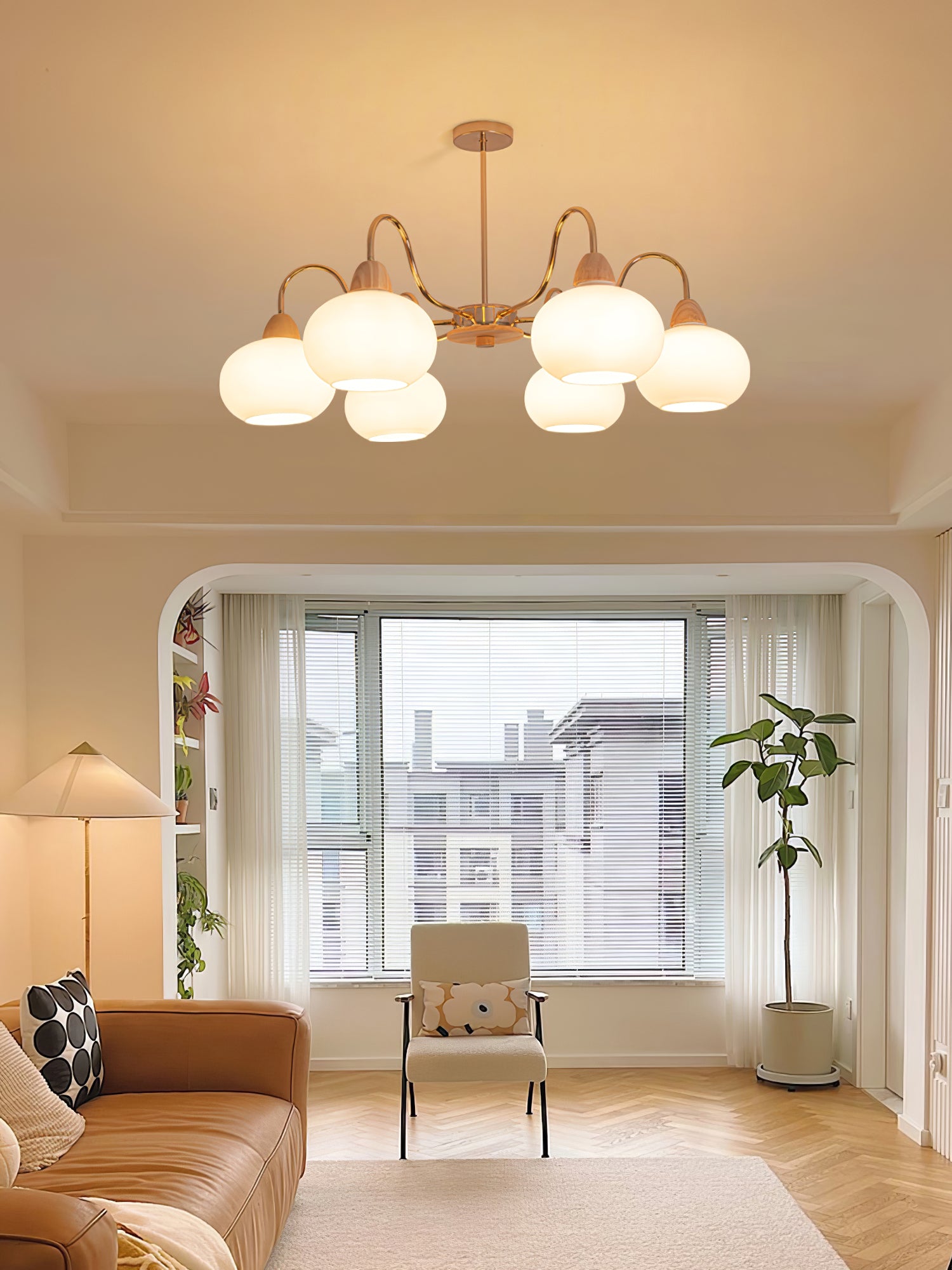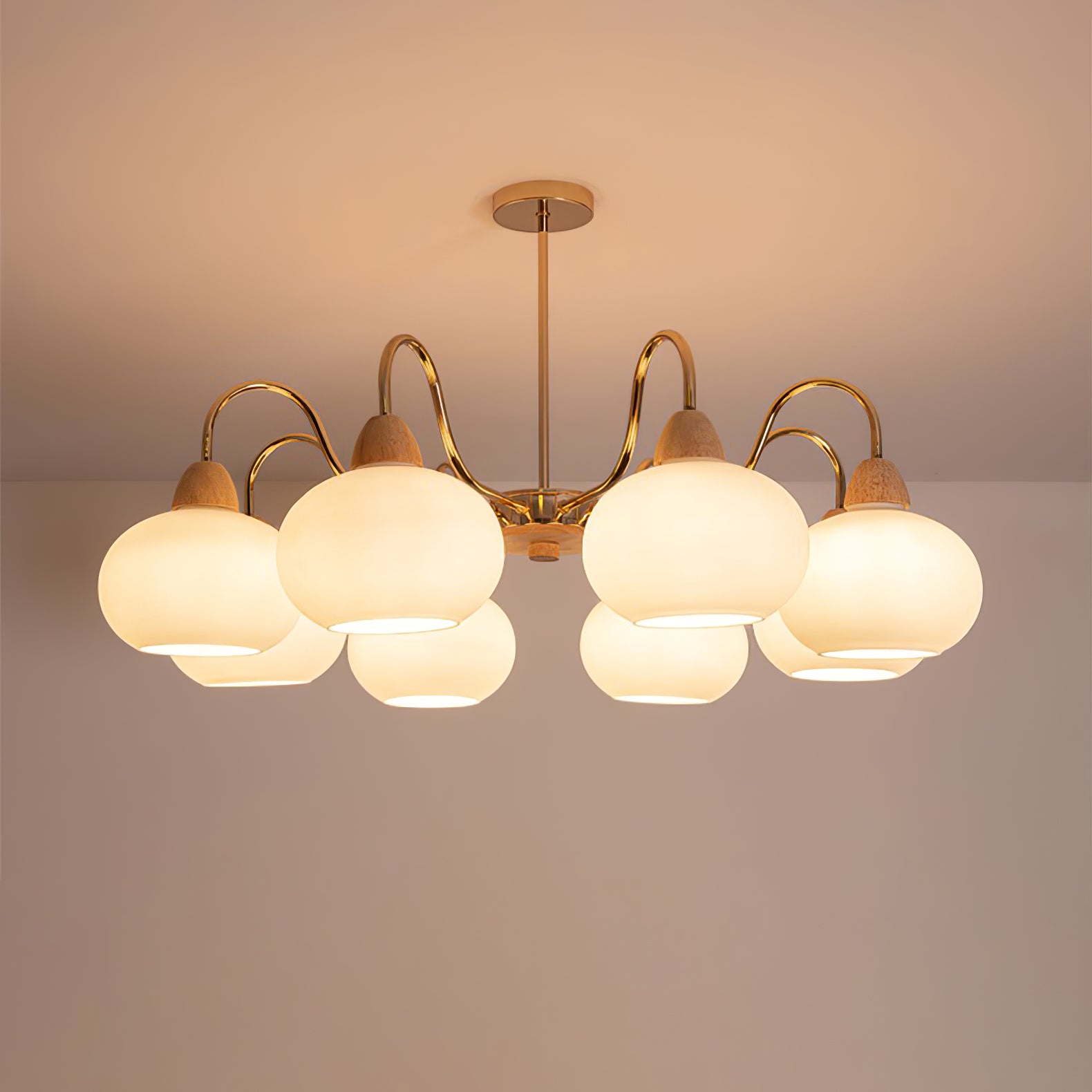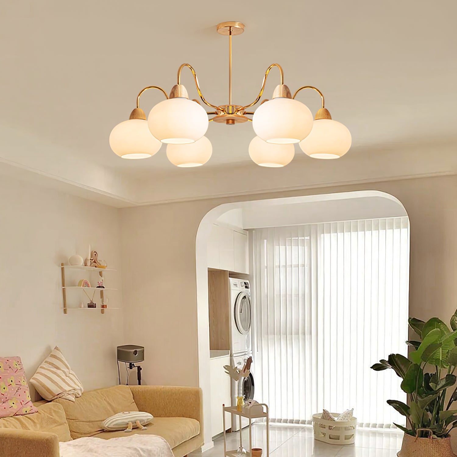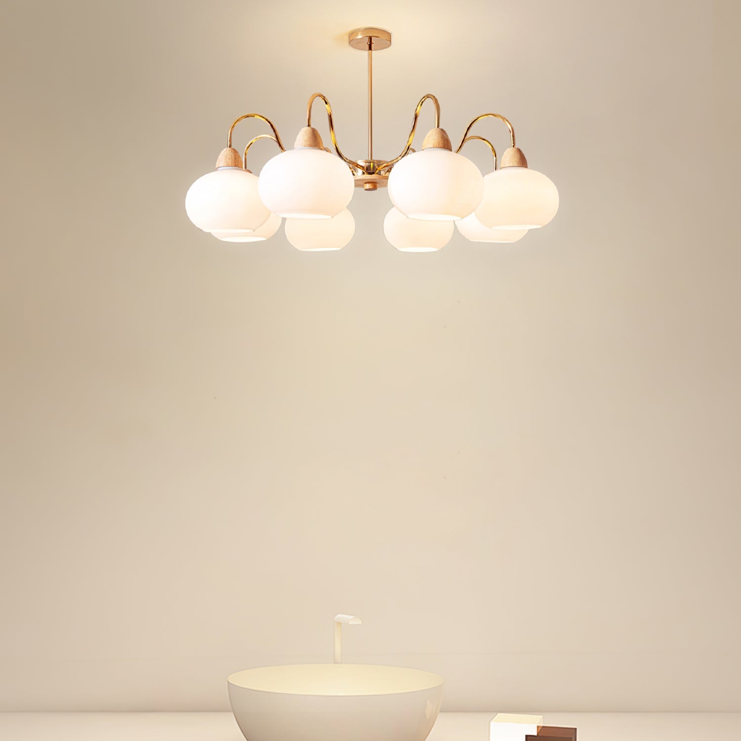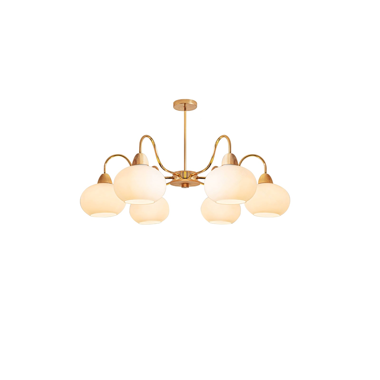 Tämä kattokruunu on täydellinen keskipiste mihin tahansa olohuoneeseen. Siinä on lasin kakimuotoinen varjostin klassisessa vuosisadan puolivälin Bauhaus-tyylissä kermanvärisellä viimeistelyllä, joka luo ainutlaatuisen ja tyylikkään ilmeen. Modernin ja ajattoman muotoilunsa ansiosta se on huomiota herättävä lisä jokaiseen kotiin.