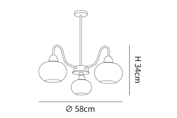 3 Lamppujen koko: Halkaisija 58 cm x K 34 cm / ∅ 22,8" x K 13,4"