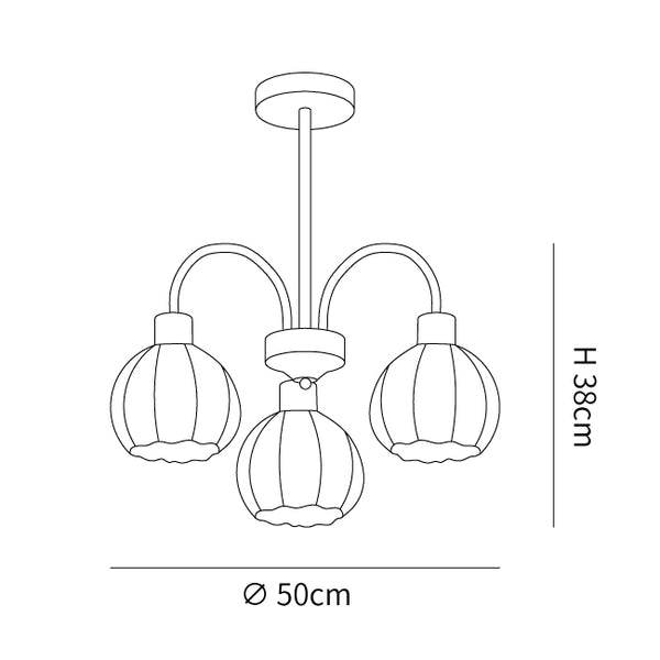 3 Lamppujen koko: Halkaisija 50 cm x K 38 cm / ∅ 19,7″ x K 15″