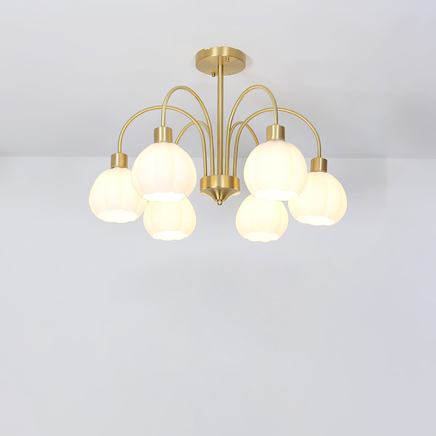 Tämä Glass Pumpkin Gold -kattokruunu on tyylikäs ja ajaton kappale, joka sopii täydellisesti ylellisen ilmeen lisäämiseen mihin tahansa huoneeseen. Sen hienostunut kultainen viimeistely korostaa loistavia lasikurpitsoja tarjoten kauniin, metallisen kimalteen, joka kiinnittää jokaisen vieraan katseen. Klassisen muotoilunsa ansiosta tämä ainutlaatuinen kattokruunu tarjoaa ajattoman ylellisyyden ilmeen.
