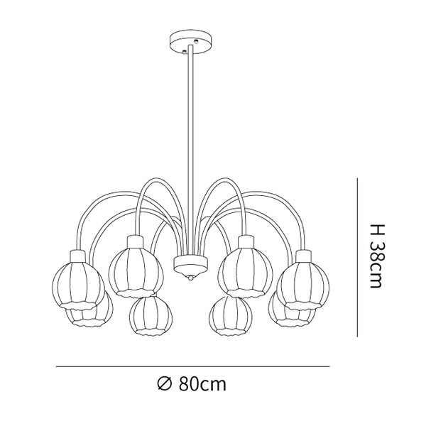 8 Lamppujen koko: Halkaisija 80 cm x K 38 cm / ∅ 31,5" x K 15"
