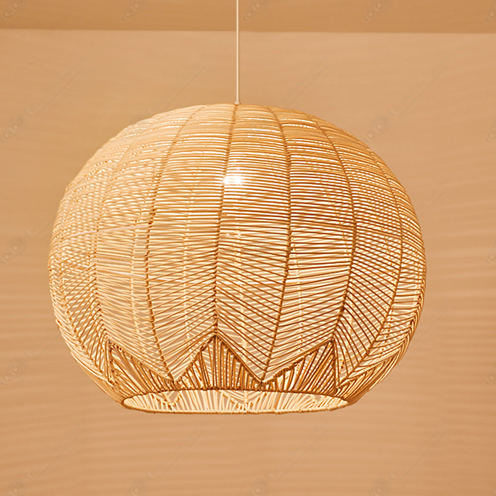 Tämä riippuvalaisin on valmistettu geometrisista rottinkilangoista, jotka on kudottu yhteen kupuvarjostimena. Tämä riippuvalaisin lähettää kirkkaita säteitä tilaan modernilla boheemilla muotoilulla. Kiinteästi voit säätää ripustuspituutta tilaan sopivaksi.