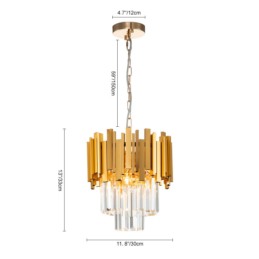 Kultainen 3-kevyinen porrastettu pyöreä kristallikruunu