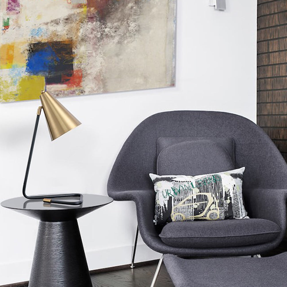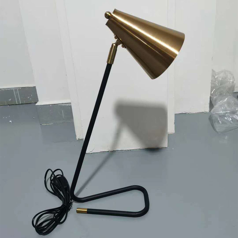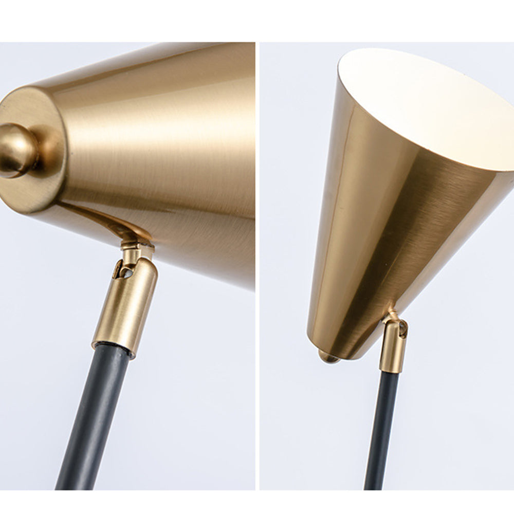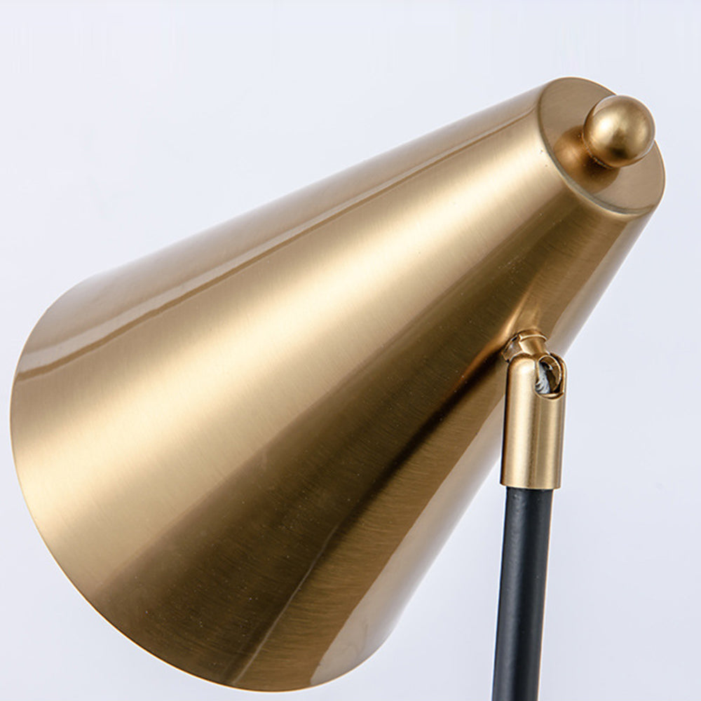 Tämän työvalaisimen kapea kaula on taivutettu kevyesti, ja sitä peittää säädettävä kartion muotoinen metallivarjostin. Tämä lämpimällä neutraalilla metallisävyllä viimeistelty valaisin lisää hienovaraista retrotyyliä jokaiseen kotisi huoneeseen.