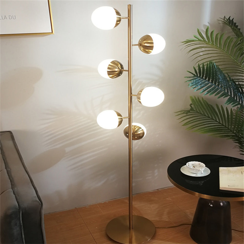 Valaise tilasi modernilla eleganssilla, sillä kultainen metallijalusta ja lasipallot luovat kiehtovan visuaalisen vaikutelman. Korosta sisustustasi tällä tyylikkäällä lattiavalaisimella, jossa yhdistyy nykyaikainen muotoilu ja energiatehokas LED-tekniikka säteilevän ja tyylikkään tunnelman luomiseksi