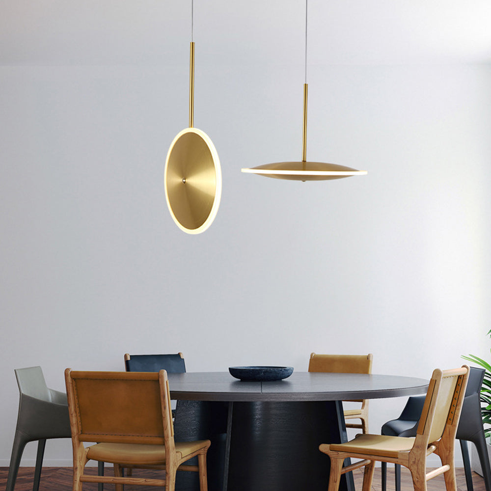 Moderni kultainen Ufo-mallin pyöreä messinkiriippuvalaisin