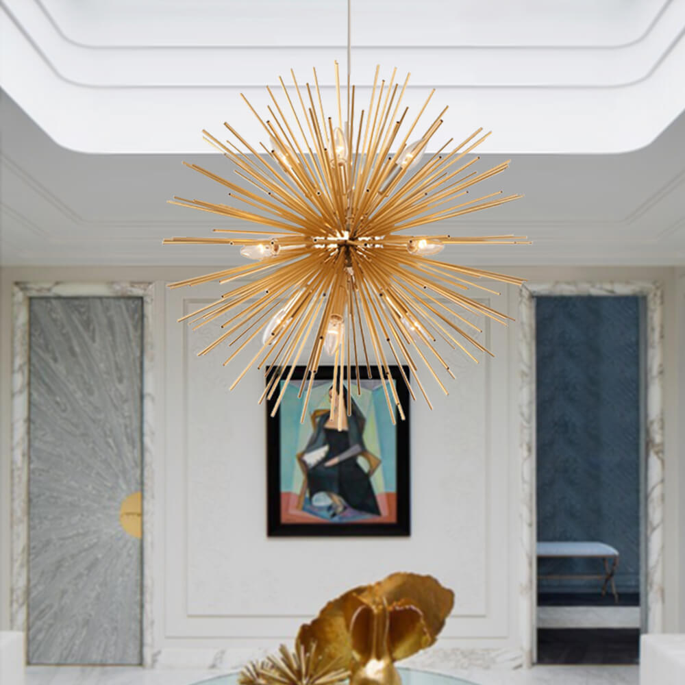 Kultainen Sputnik Sphere Sunburst kattokruunu