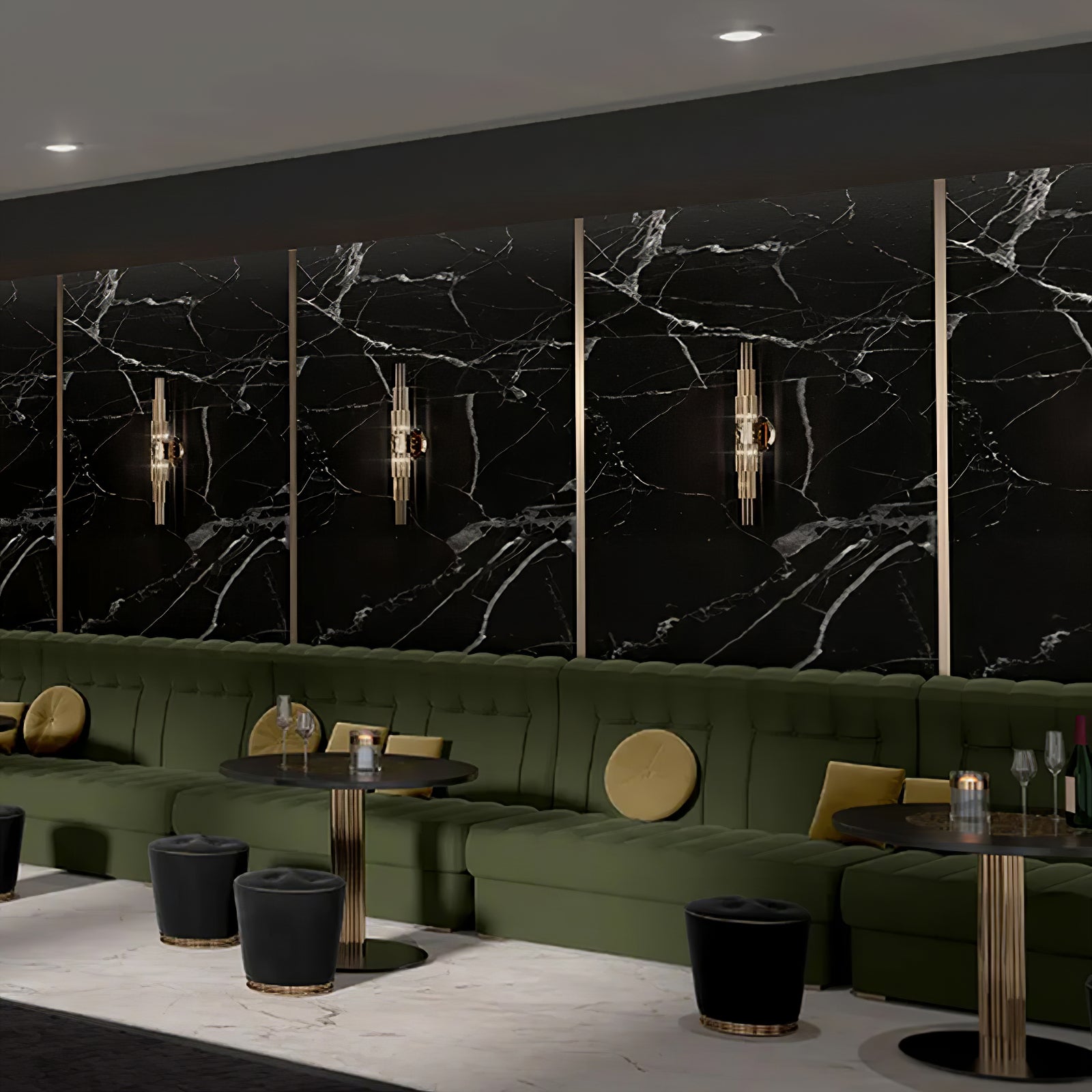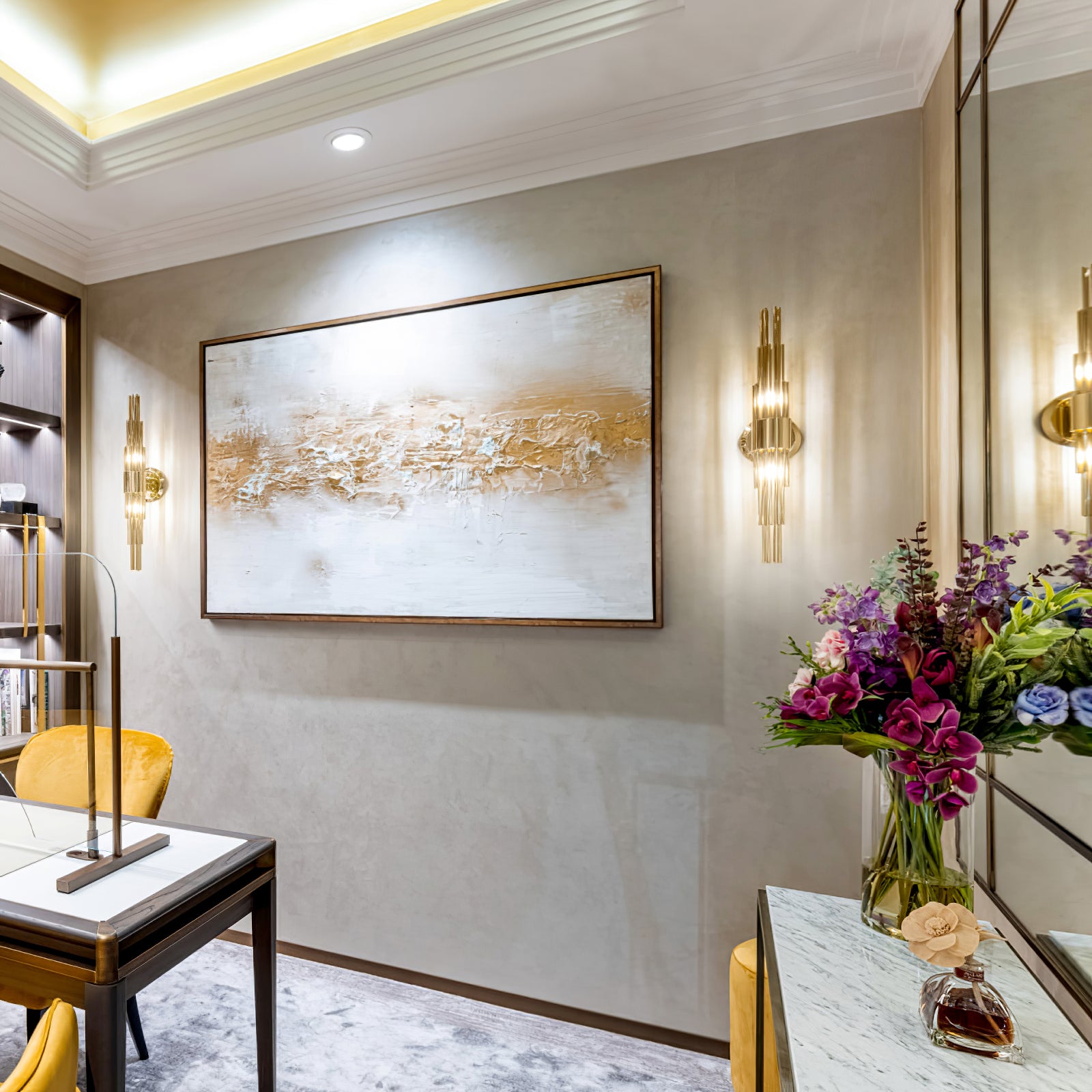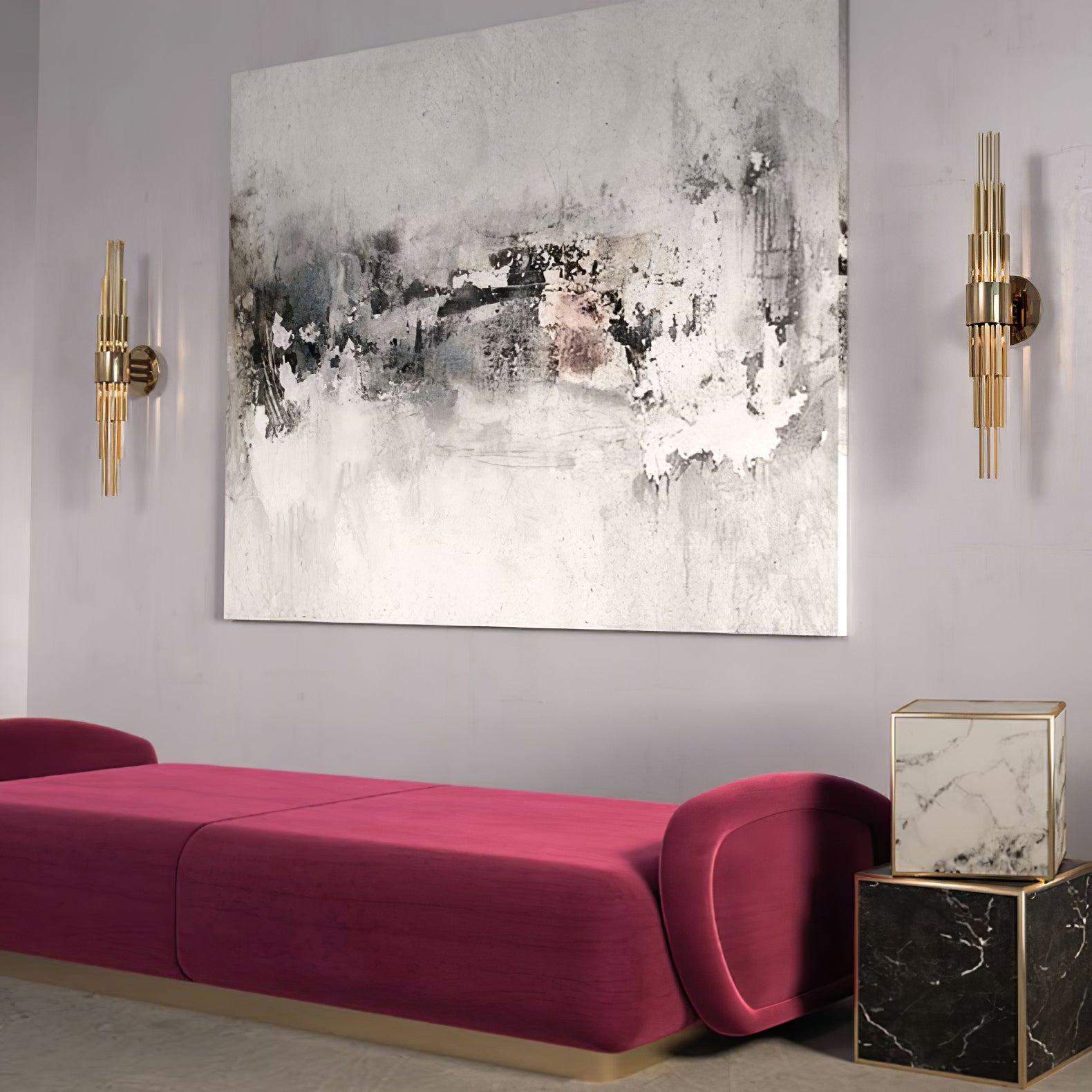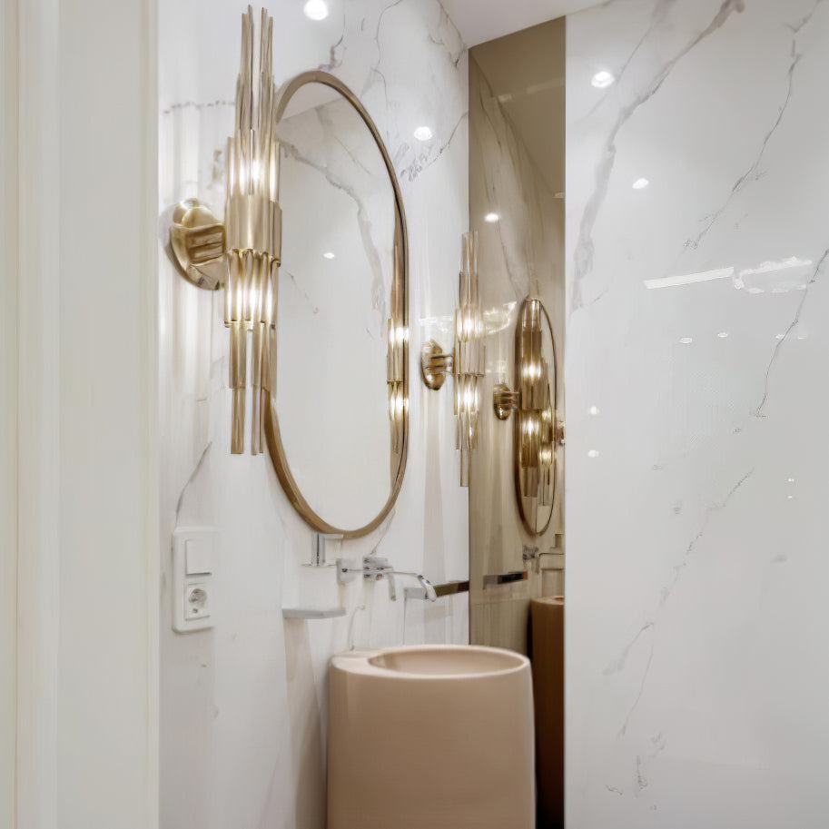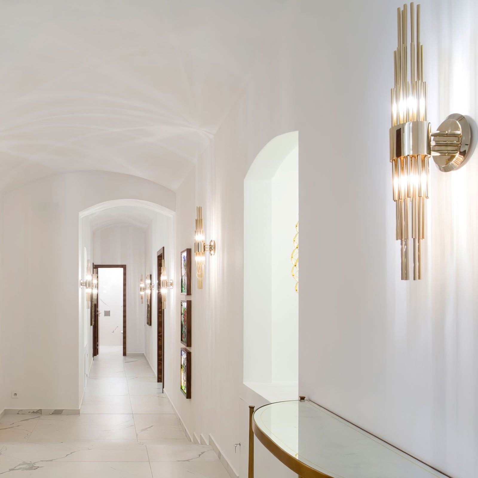Tässä tyylikkäässä seinävalaisimessa on pitkät kullatut lasiputket, jotka antavat suunnittelulle täysin eksklusiivisen ja ylellisen ilmeen, mikä asettaa uuden tason erottuvalla ulkonäöllään. Tämä art deco -arkkitehtuurin inspiroima rikkaiden materiaalien ja sulavien linjojen resepti tekee Streamline-seinävalustasta halutun.