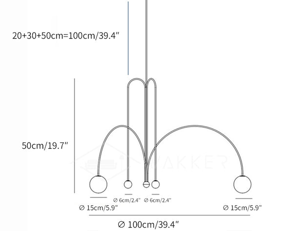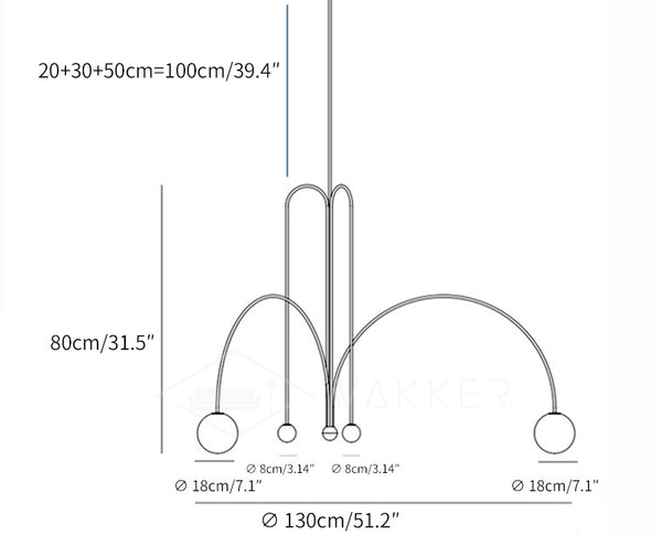 Toimitamme ripustustangon, jonka pituus on 20+30+50cm=100cm/39,4″, joka voidaan jatkossa liittää ja pidentää tarpeen mukaan.