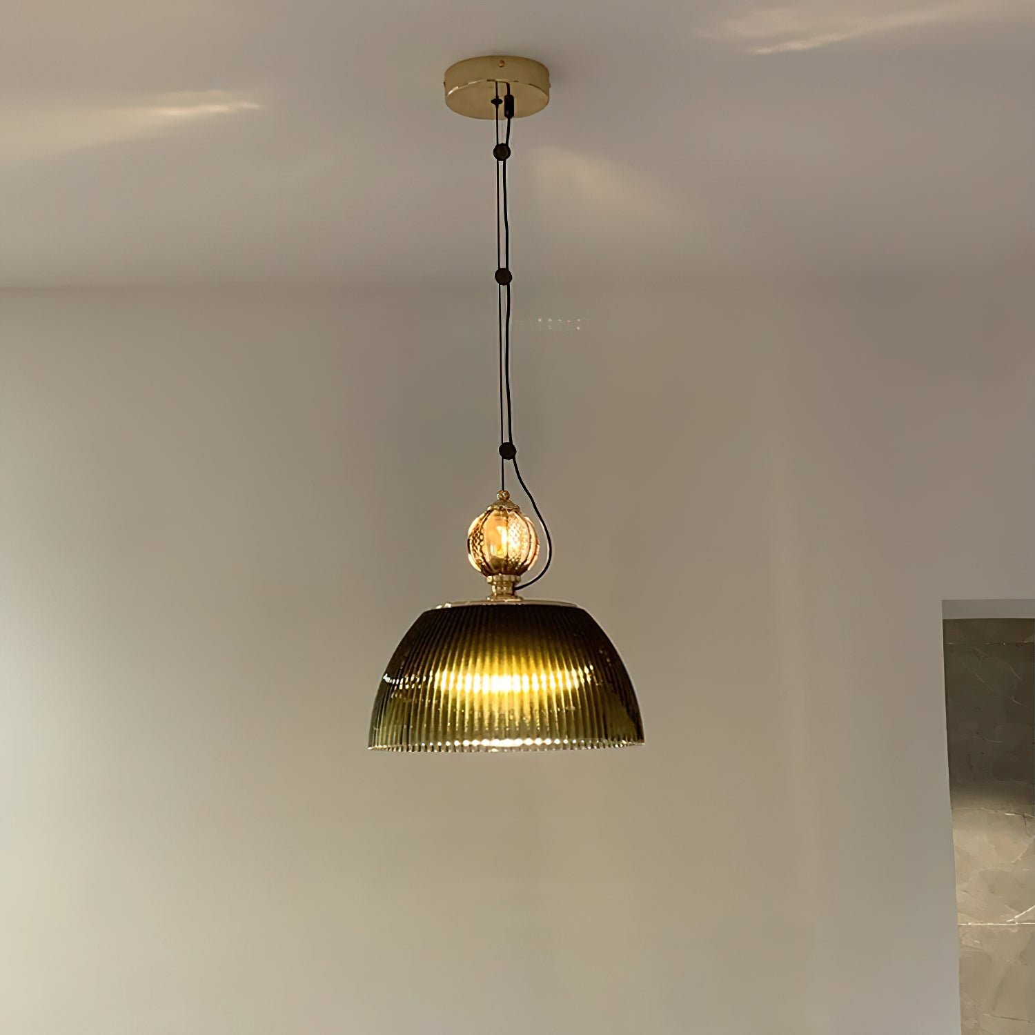 Vihreä lasikulho riippuvalaisin