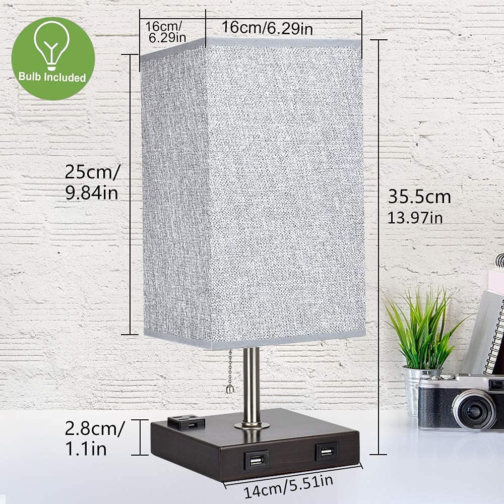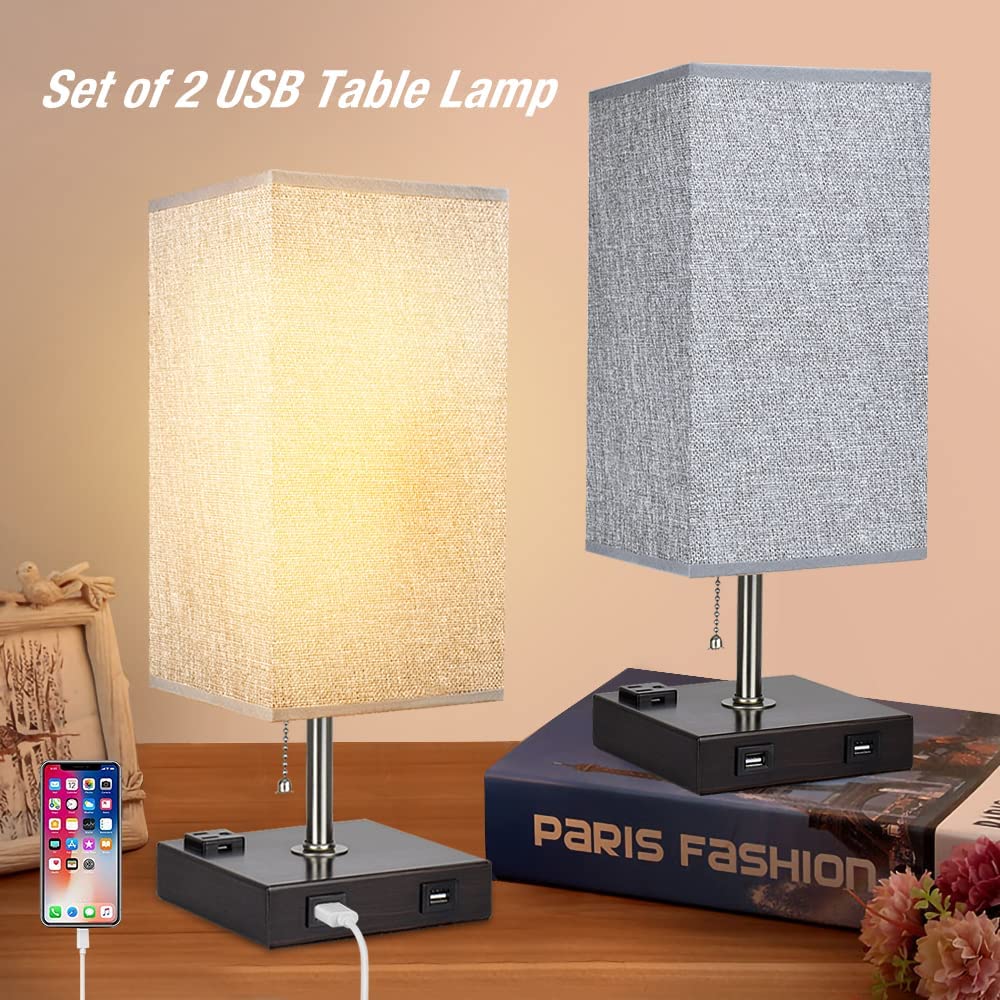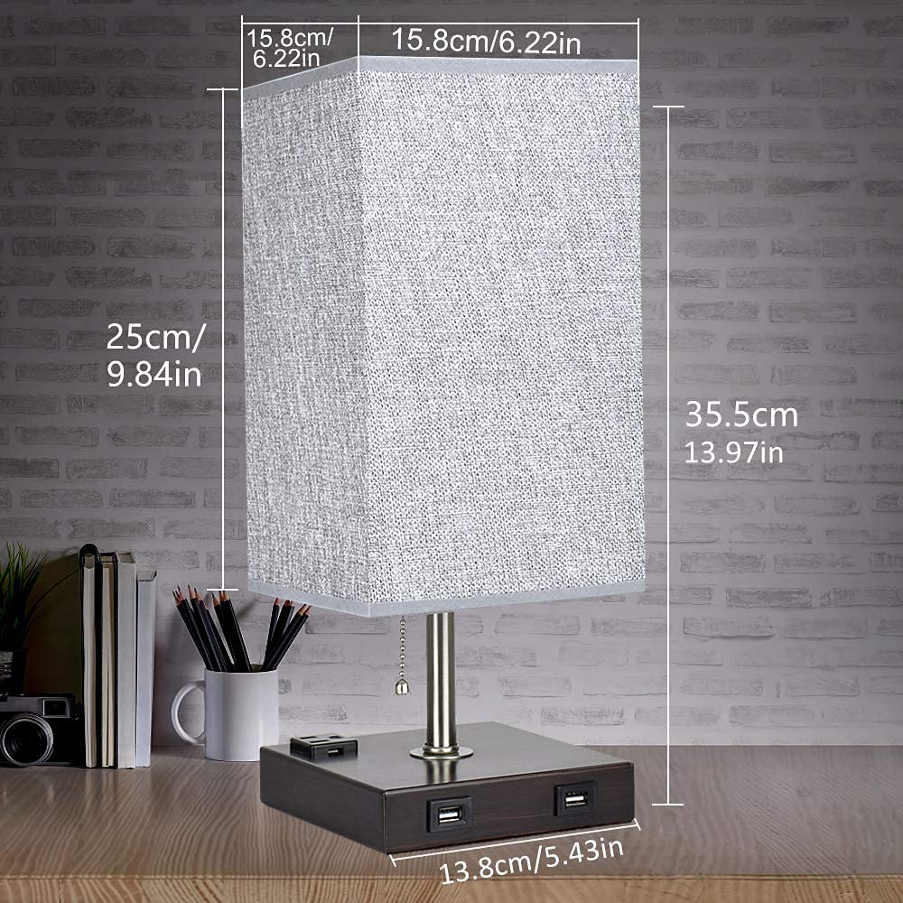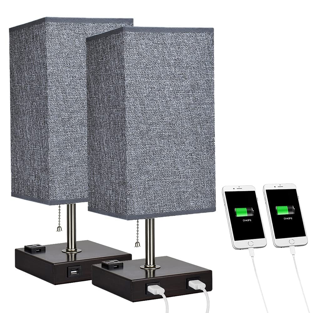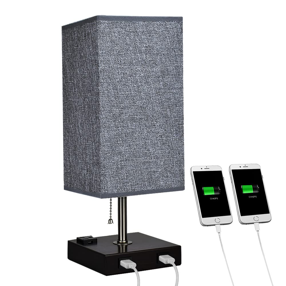 Depuley USB-pöytävalaisin makuuhuoneeseen, minimalistinen yöpöytävalaisin kahdella USB-portilla, yöpöydän pöytälamput harmaalla kankaalla varjostetut sivuvalaisimet olohuoneeseen, toimistoon, lastenhu