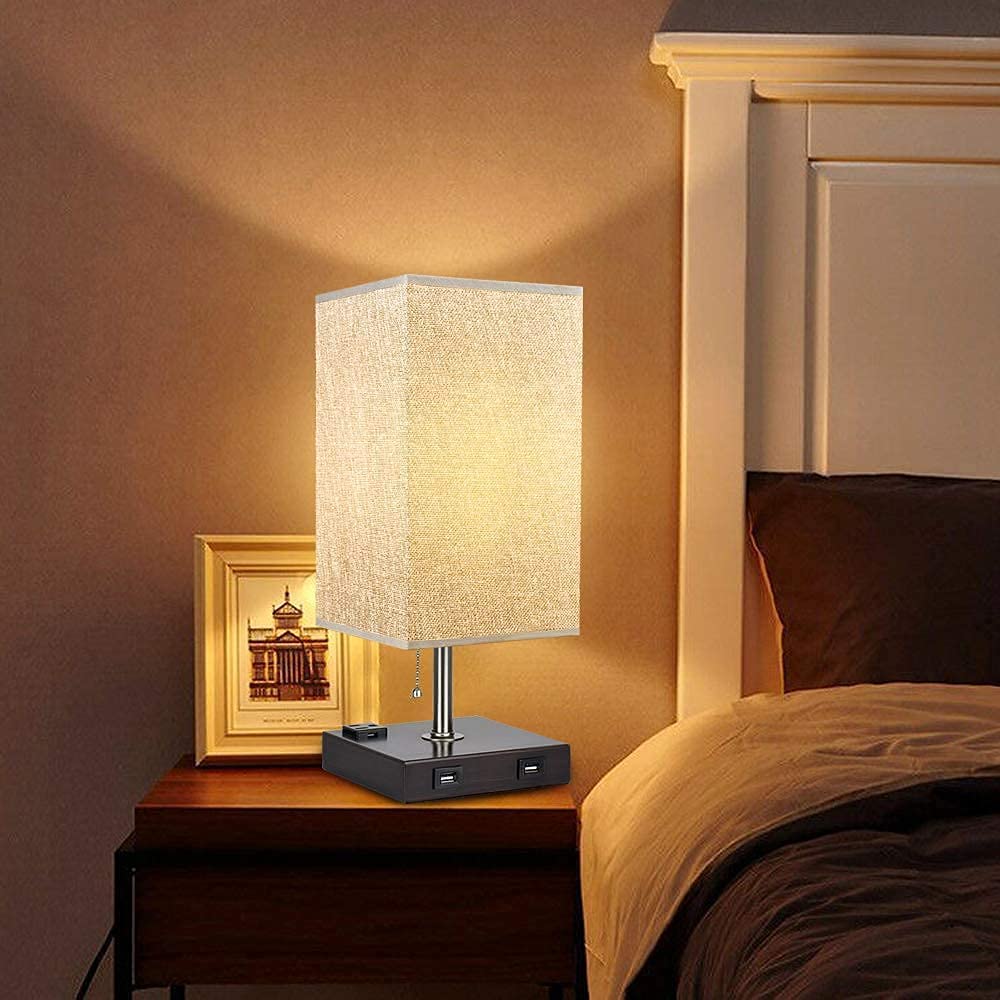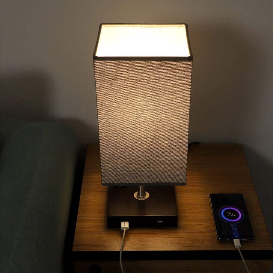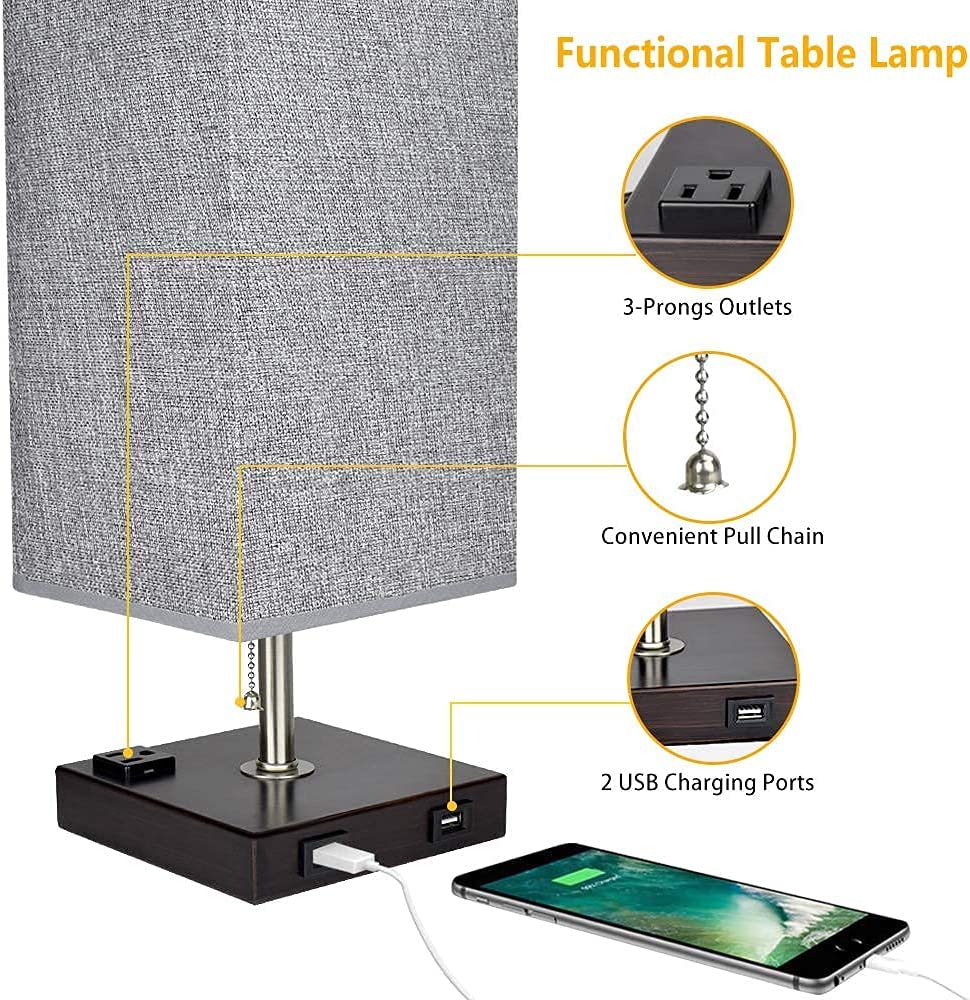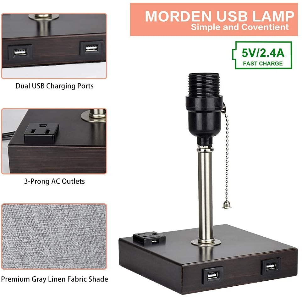 Depuley USB-pöytävalaisin makuuhuoneeseen, minimalistinen yöpöytävalaisin kahdella USB-portilla, yöpöydän pöytälamput harmaalla kankaalla varjostetut sivuvalaisimet olohuoneeseen, toimistoon, lastenhu