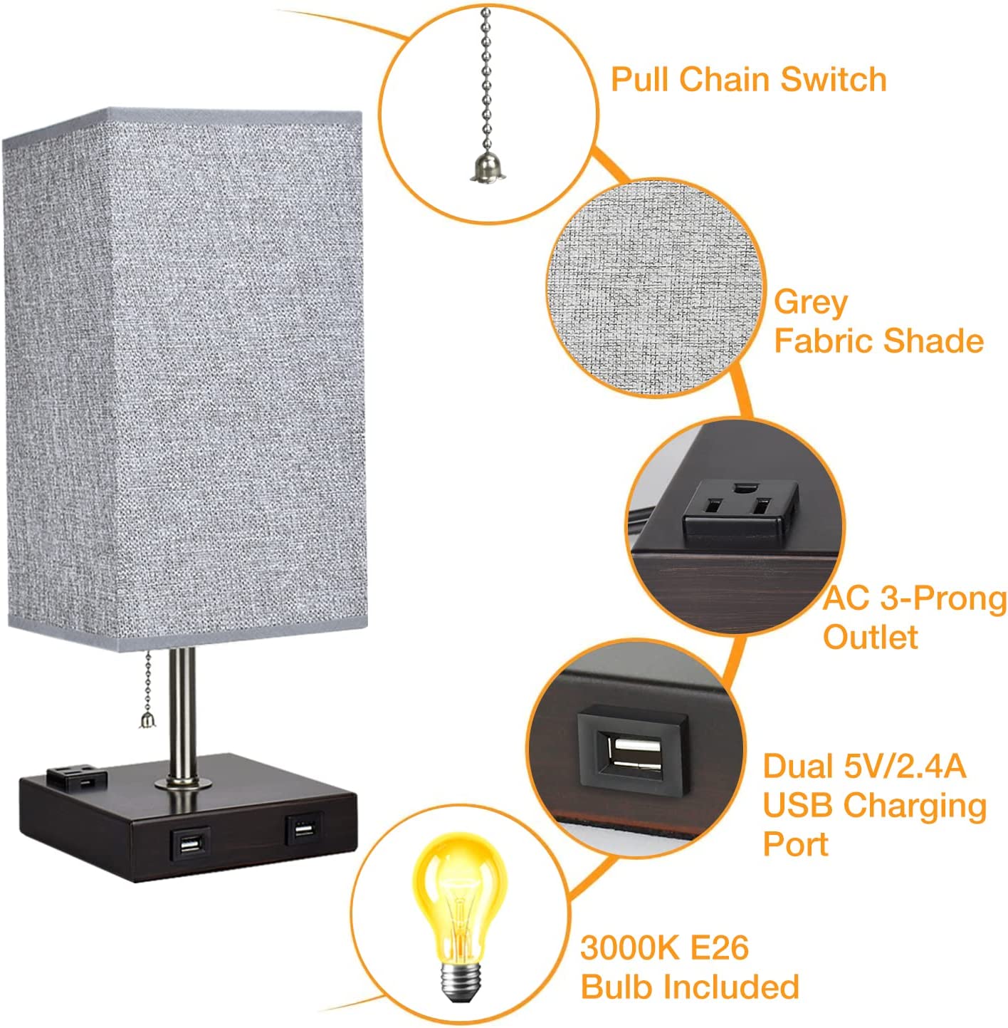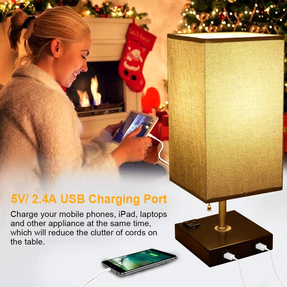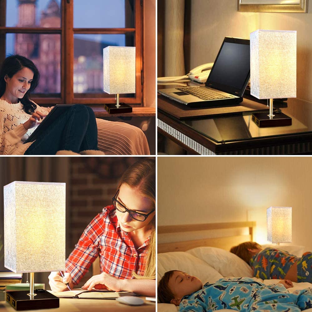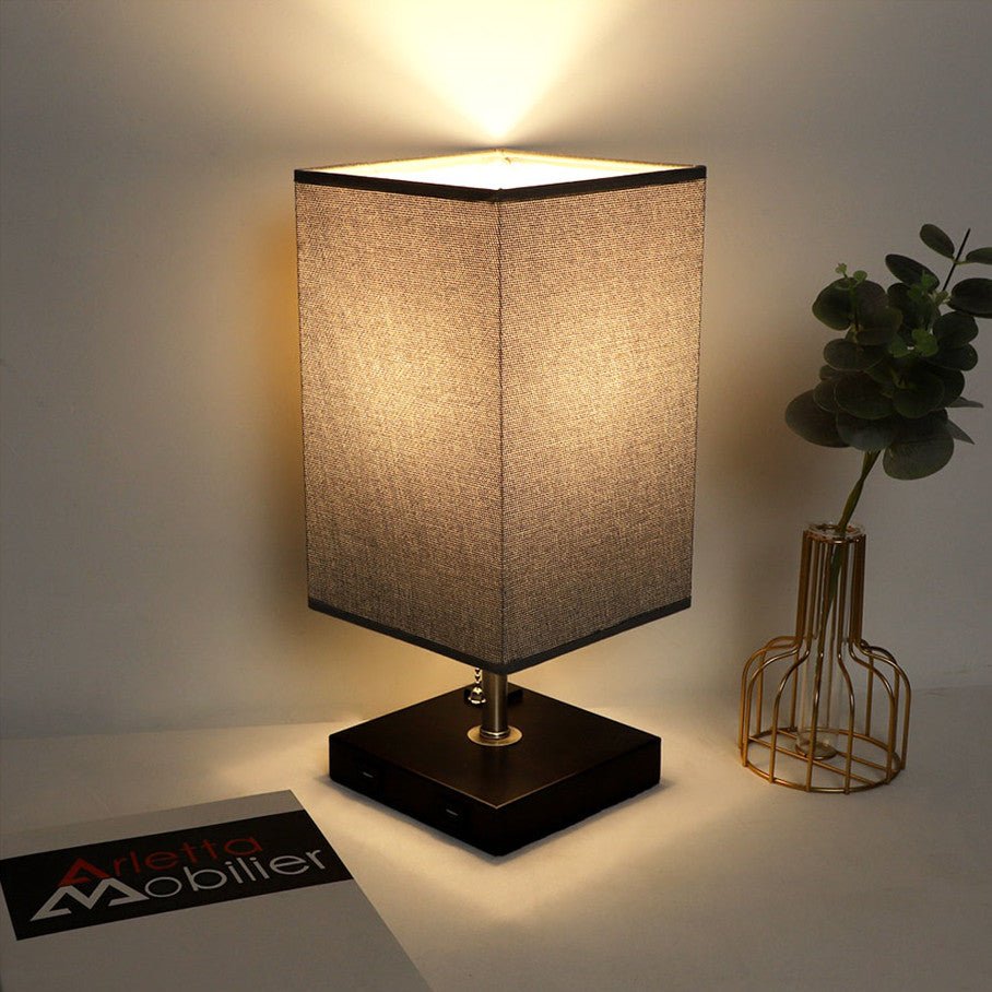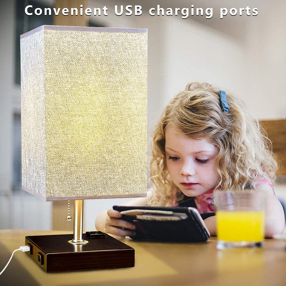 Depuley USB-pöytävalaisin makuuhuoneeseen, minimalistinen yöpöytävalaisin kahdella USB-portilla, yöpöydän pöytälamput harmaalla kankaalla varjostetut sivuvalaisimet olohuoneeseen, toimistoon, lastenhu