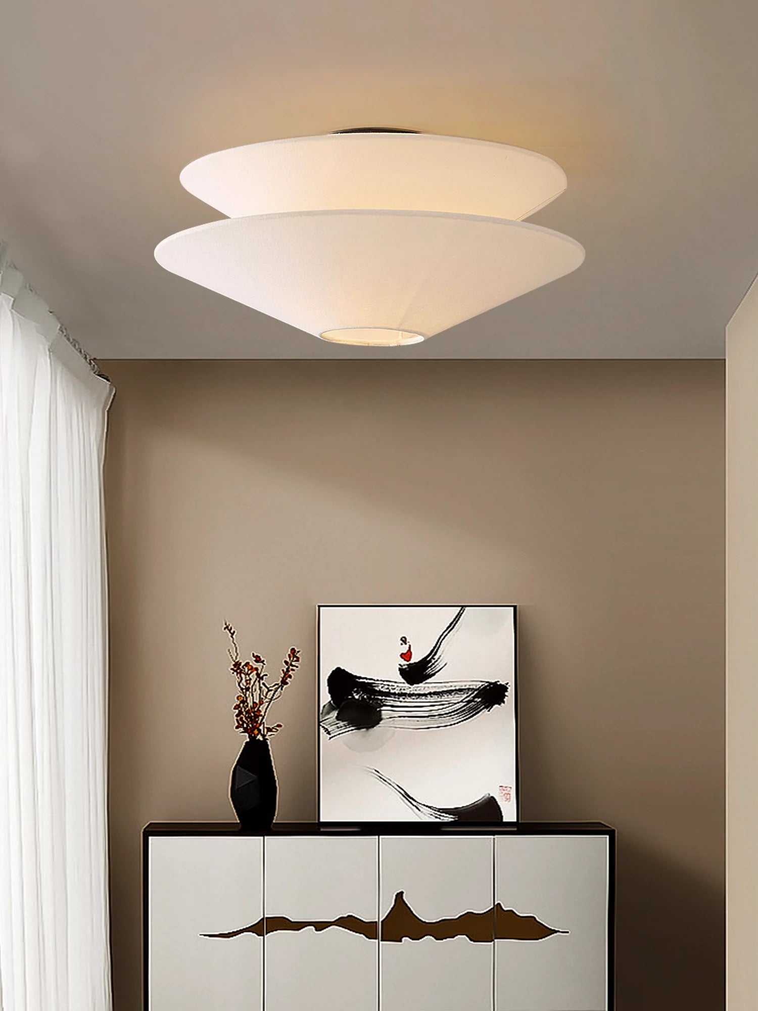 The Gull Flushmount Ceiling Light on välitön huonestylisti, jolla on ylimitoitettu muotoilu ja peräkkäiset valkoiset liinavaatteet. Luo unenomainen tunnelma ja lisää ripauksen eleganssia tällä upealla valaisimella. Yksinkertainen mutta vaikuttava, tämä uppoasennus on välttämätön mihin tahansa tilaan.