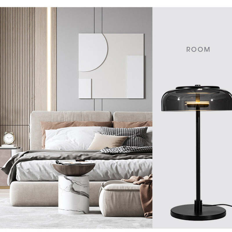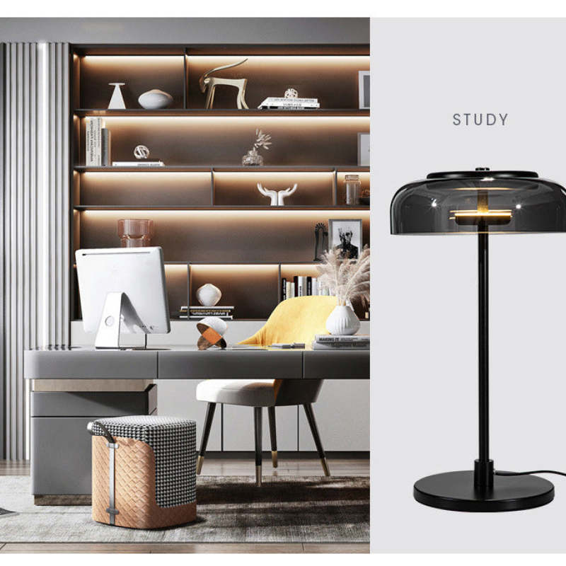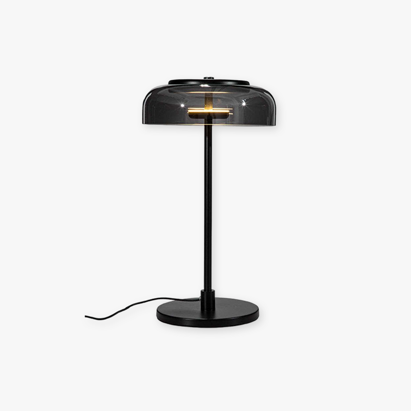 - Tämän metallisen pöytävalaisimen musta lasivarjostin antaa riittävän kirkkauden eikä ole liian kova.