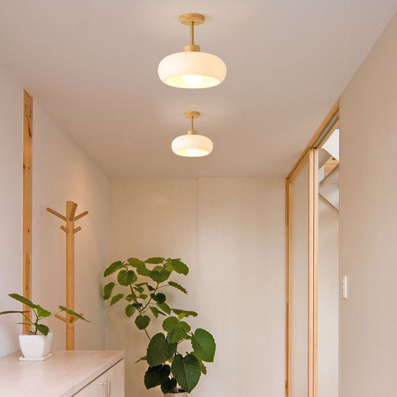 Hailie uppoasennettu kattovalokuppi minimalistinen, puu/lasi, valkoinen/oranssi
