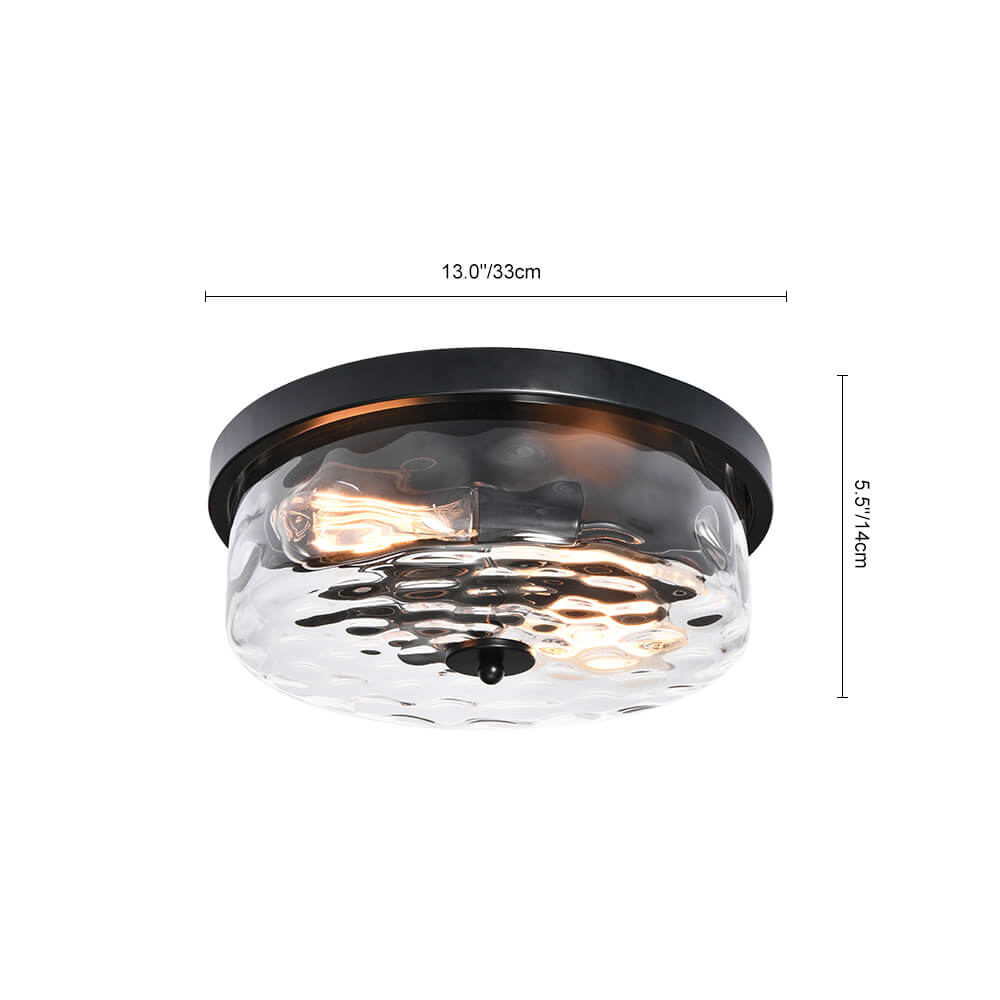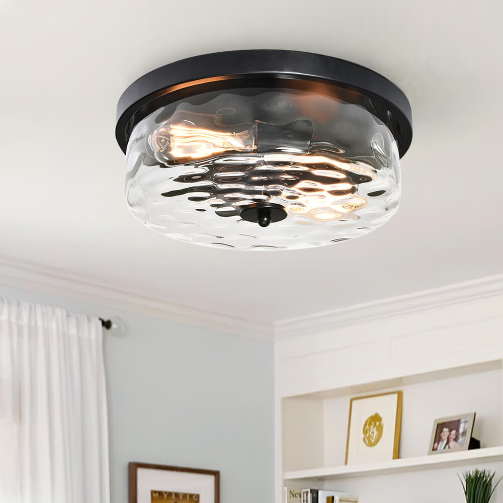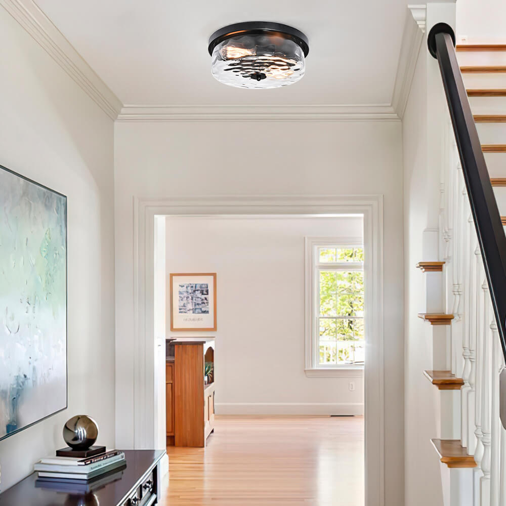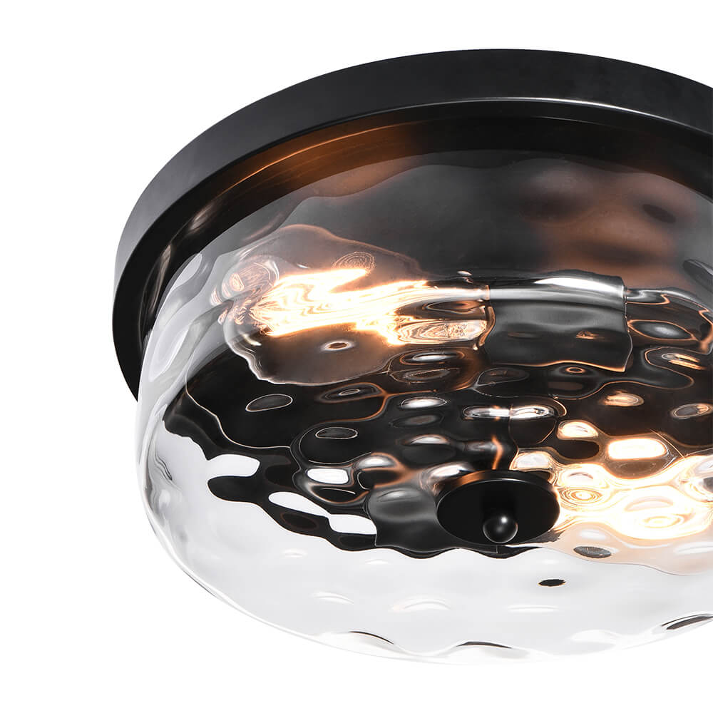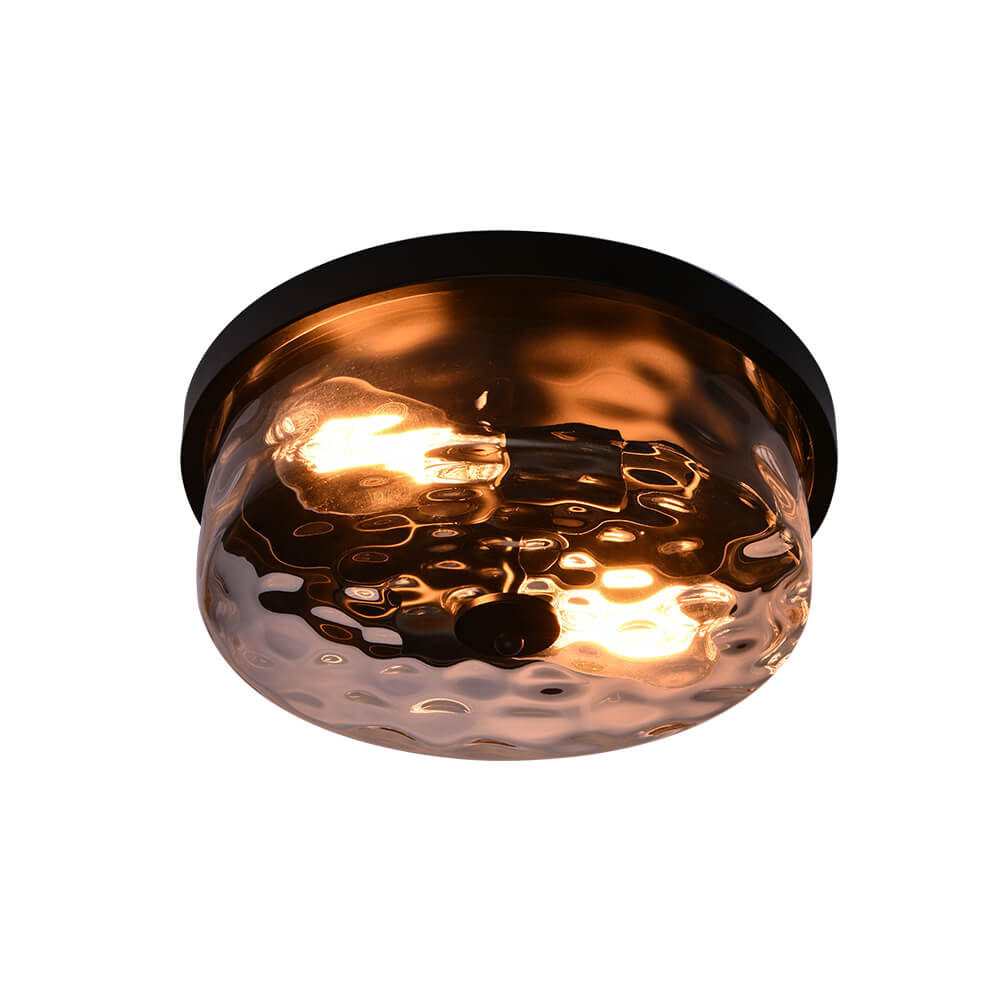 Vasarattu lasi korostaa paksua rumpua, mikä lisää tämän uppoasennettavan kattovalaisimen kauneutta. Pyöreä öljyhierottu metallipohja lisää viehätysvoimaa ja kohottaa klassista ilmettä. Kahdesta E26/E27-polttimosta (ei sisälly toimitukseen) tulevan hienostuneen vasaroidun lasivarjostimen ansiosta tämä pyöreä kattovalaisin säteilee taittavaa valoa, joka luo visuaalista mielenkiintoa kattoon. Matalaprofiilinen, mutta silmiinpistävä lasillinen puoliksi upotettava kattovalaisin on miellyttävä lisä toivottaaksesi perheesi ja vieraasi tervetulleiksi sisäänkäynnille, käytävälle, tasanteelle, eteiseen tai ruokailutilaan.Detail