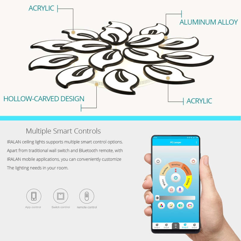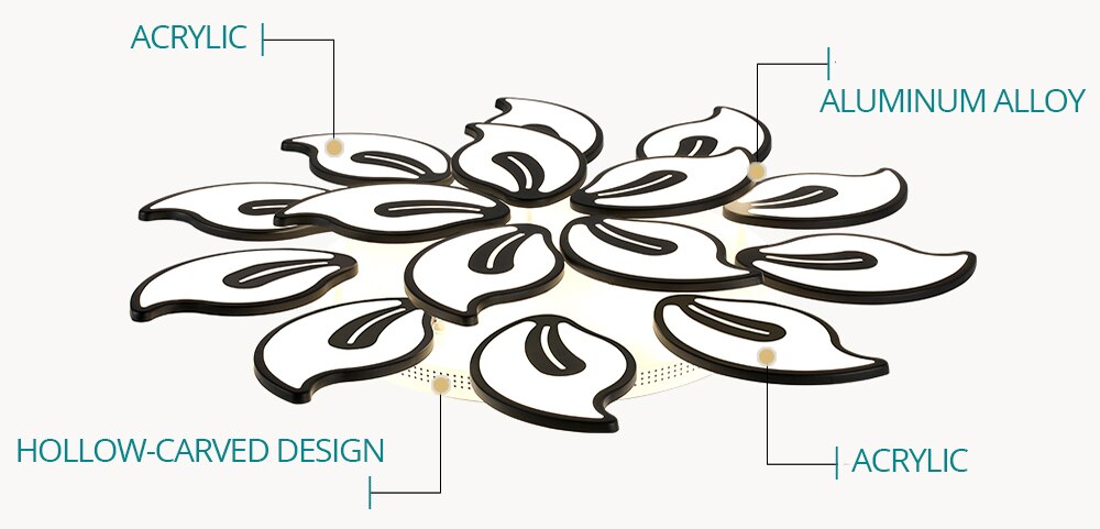 - LED-kattovalaisin, joka on saanut inspiraationsa Bauhinian muodosta, sen eleganteista kaarevista ja klassisista mustavalkoisista väreistä tekevät siitä sopivan kaikkiin sisustustyyleihin.