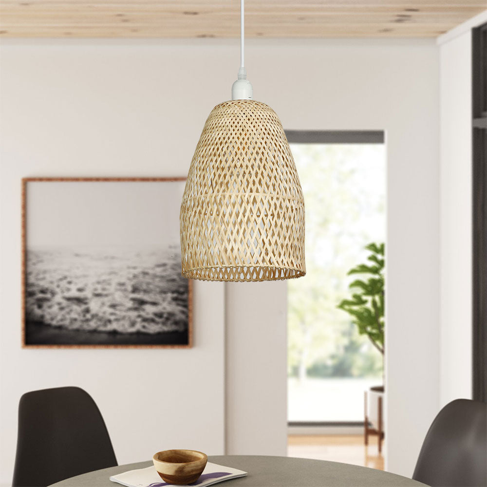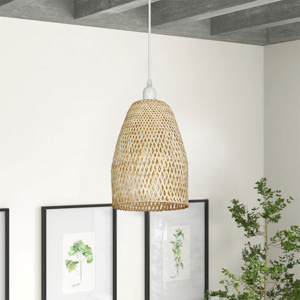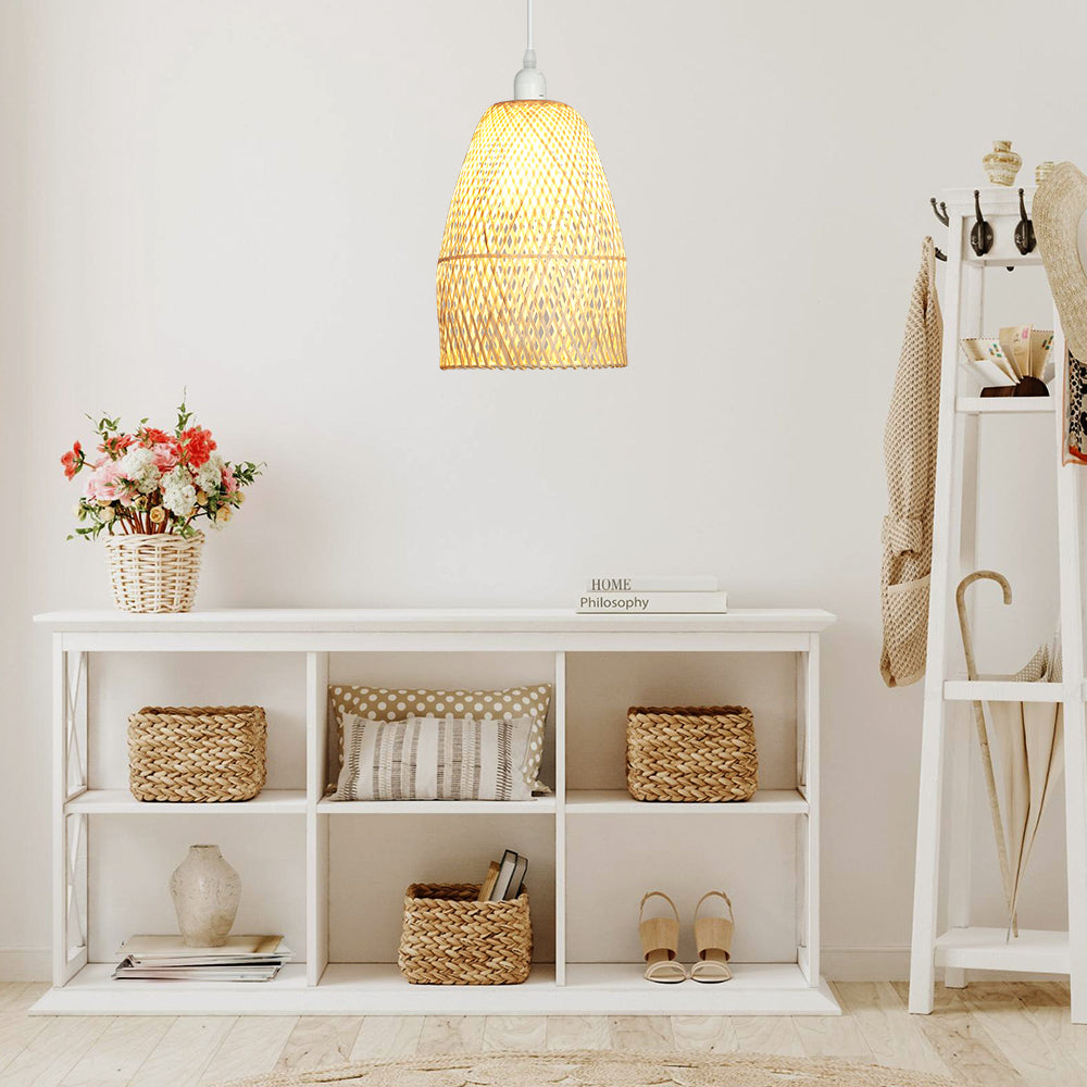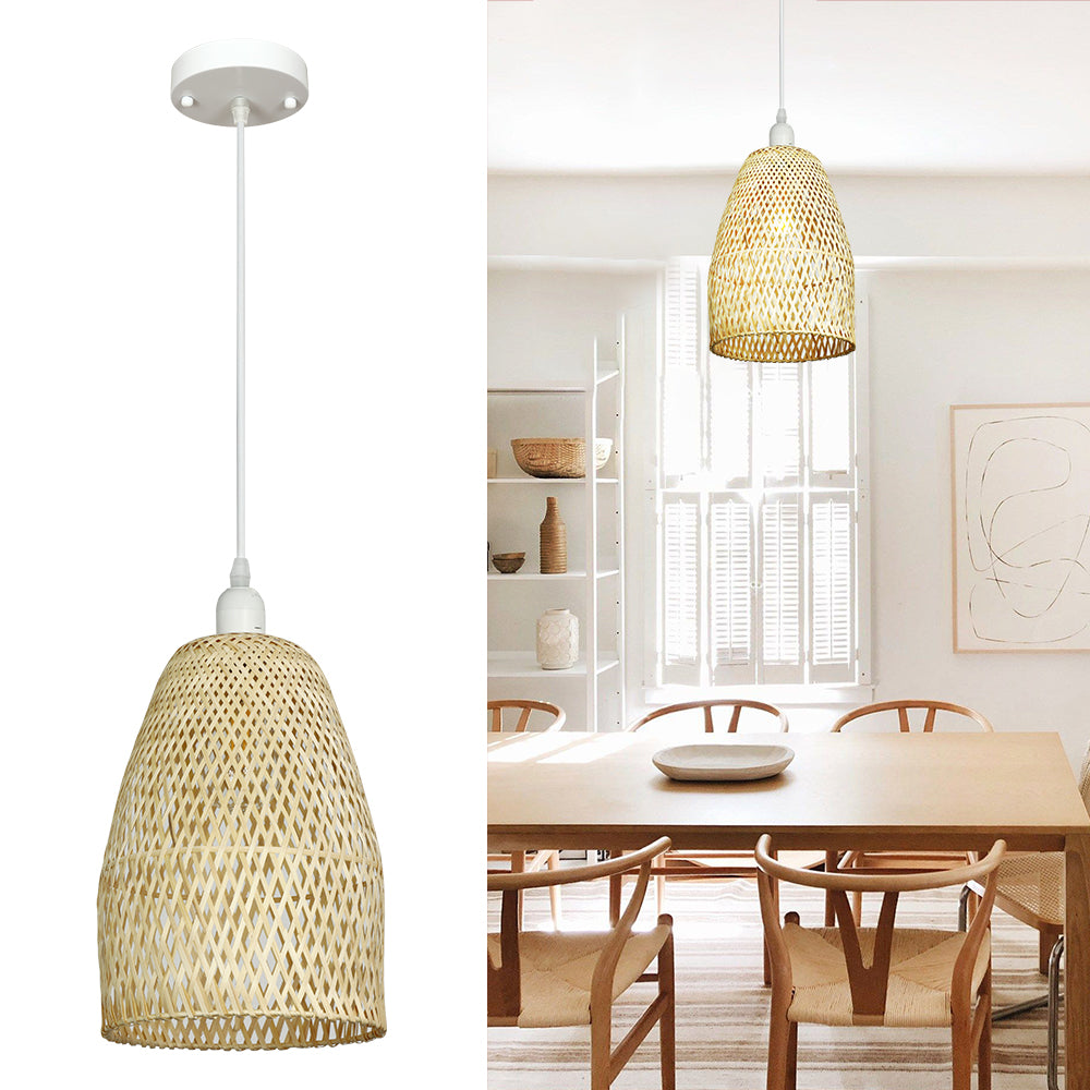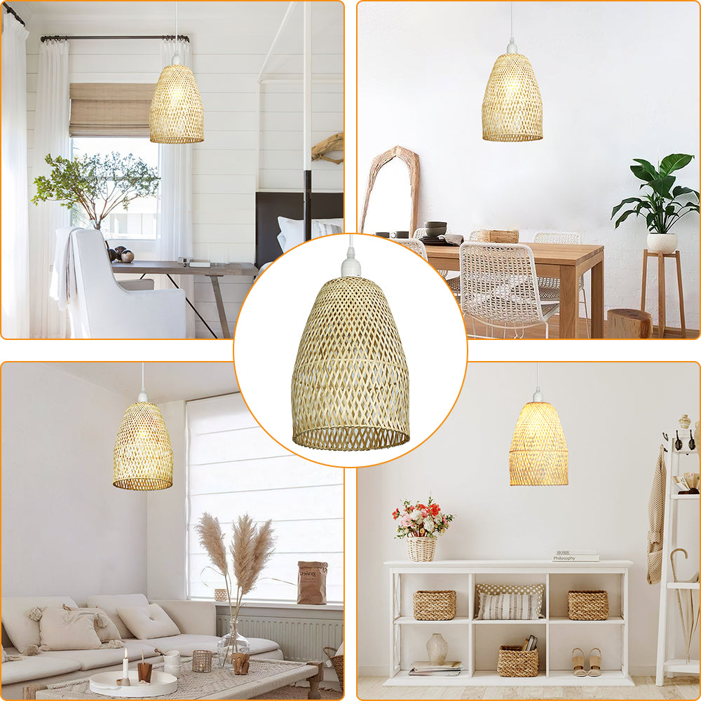 Depuley Retro Bamboo Woven Pendant Lights, Hand-Woven Caged Ceiling Lamp, Corridor Bedroom Living Room Lighting Pendant Light Dining Room Decorative Lamp