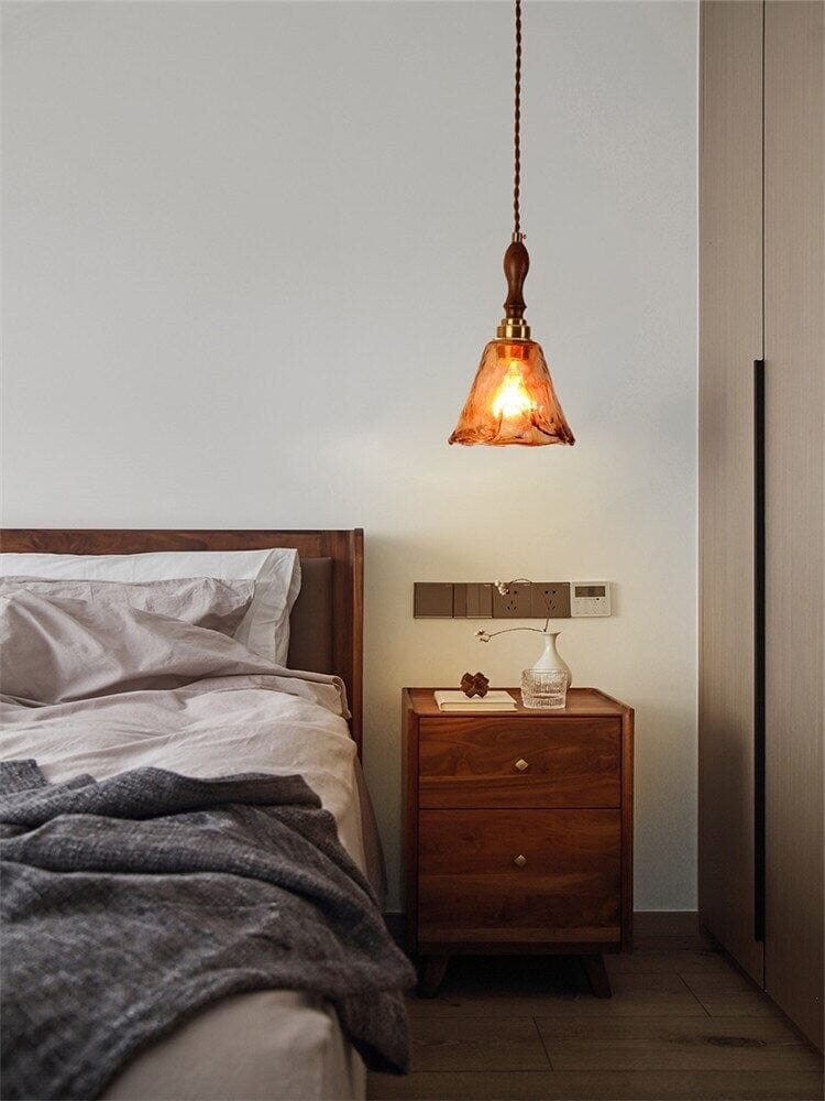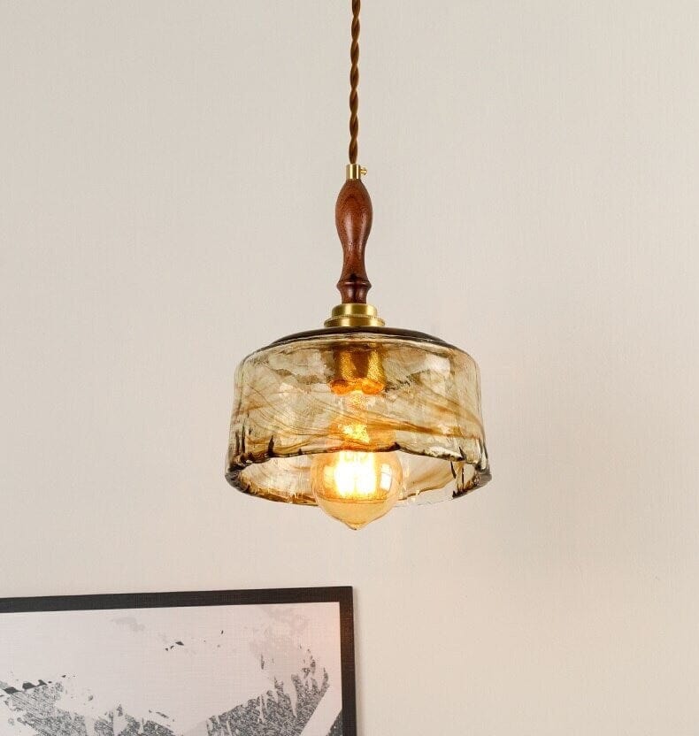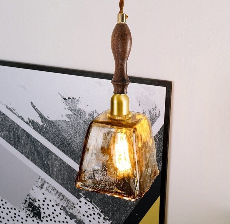 Käsintehty kohokuvioitu teelasiriippuva LED-valo puisella kahvalla vintage-tyyliin - Faredecor