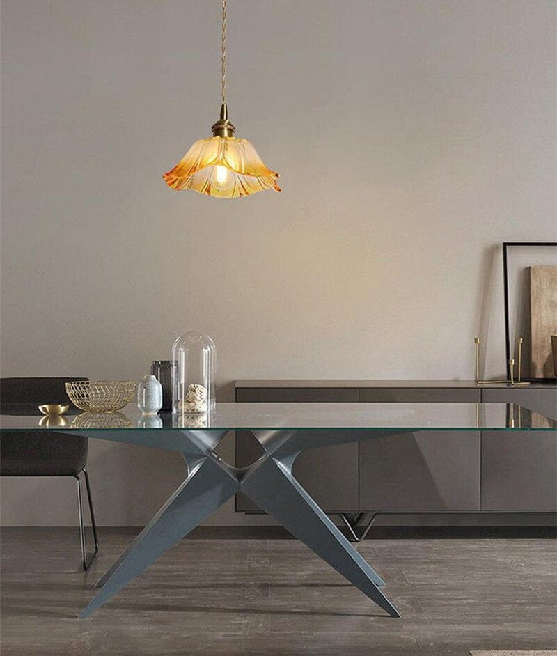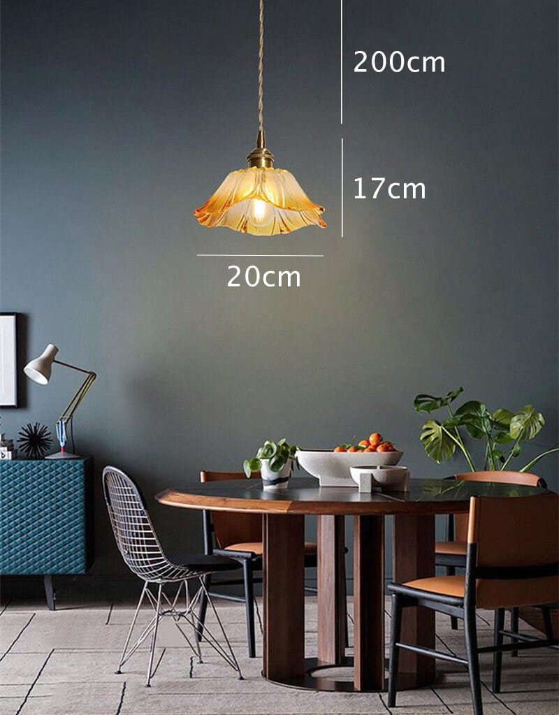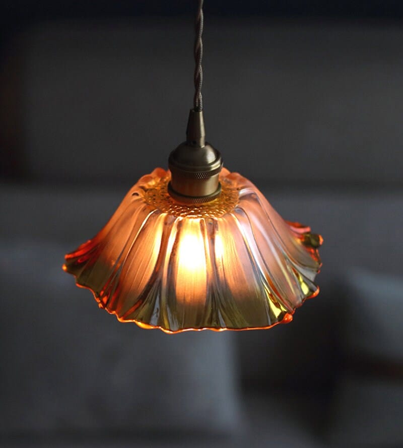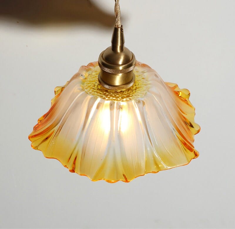 Käsintehty oranssi gradienttilasi kukkariippuva LED-valo vintage-tyyliin - Faredecor