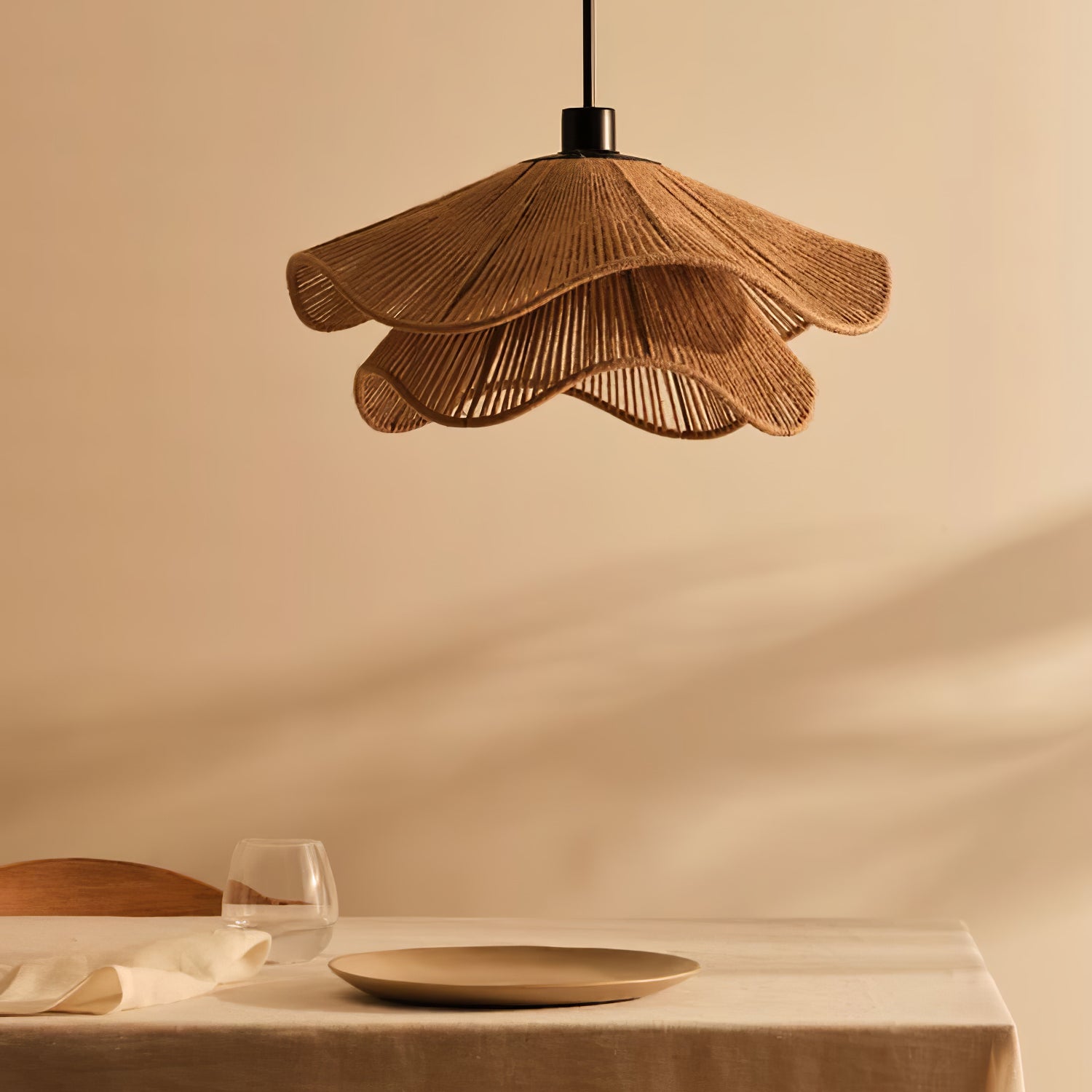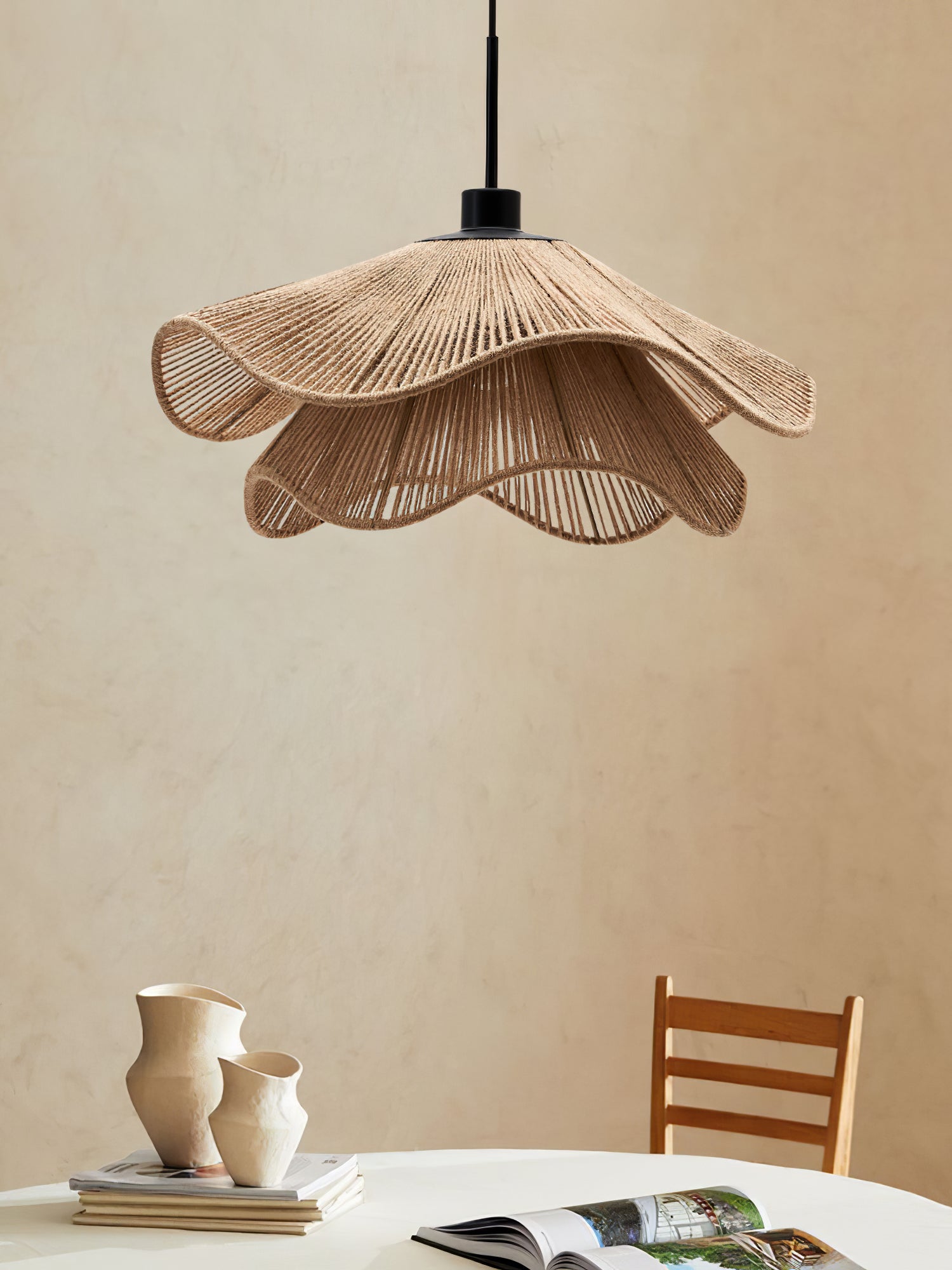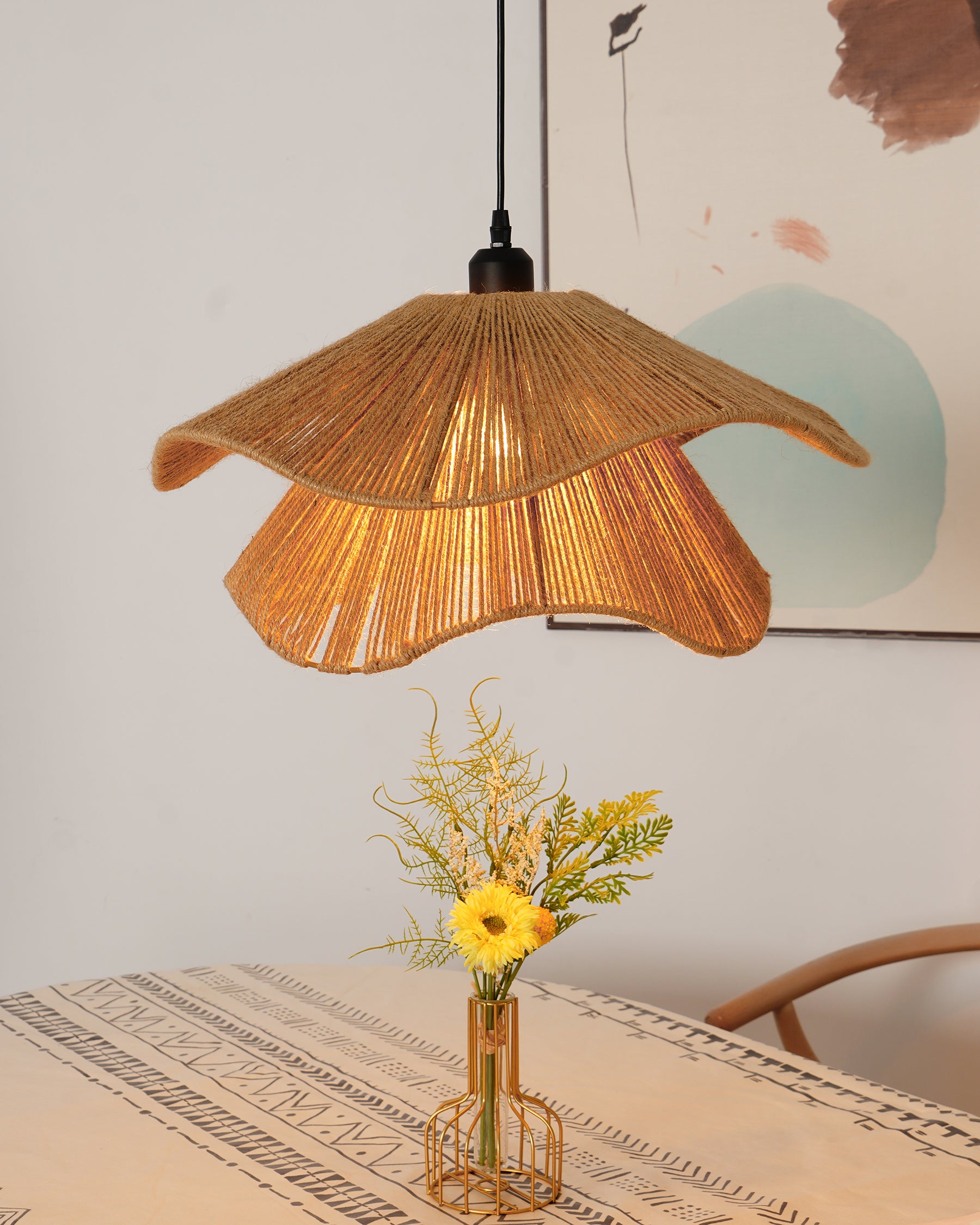 Lisää ripauksen eksoottista charmia mihin tahansa huoneeseen käsintehdyllä olkihattu-riippuvalaisimellamme. Hamppu Ropista kudottu olkihattu, tämä ainutlaatuinen valo säteilee lämmintä, pehmeää hehkua, joka on täydellinen kodikkaan tunnelman luomiseen. Ripusta se ruokapöytäsi, kylpyhuoneesi tai lukunurkkauksen yläpuolelle saadaksesi rantakaupungin tunnelman kotiisi.