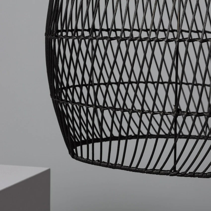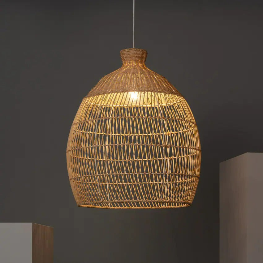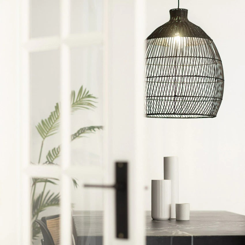 Käsintehty kudottu rottinkiriippuvalaisin saaren yllä