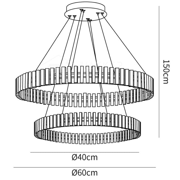 Koko: Halkaisija 40 cm + halkaisija 60 cm x K 150 cm / ∅ 15,7″ + ∅ 23,6″ x K 59″ (teho ~ 165 W)