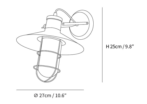 Harbour Industrial Wall Light ammentaa inspiraatiota klassisista seinävalaisimista. Tämä seinävalaisin on valmistettu läpinäkyvästä lasikuvusta ja metallilangasta, ja se suojaa sisempää polttimoa ja siinä on katos, joka lisää kestävyyttä. Sopii katetuille sisäänkäynneille, parvekkeille, katetuille patioille tai ulkokatoksen alle.