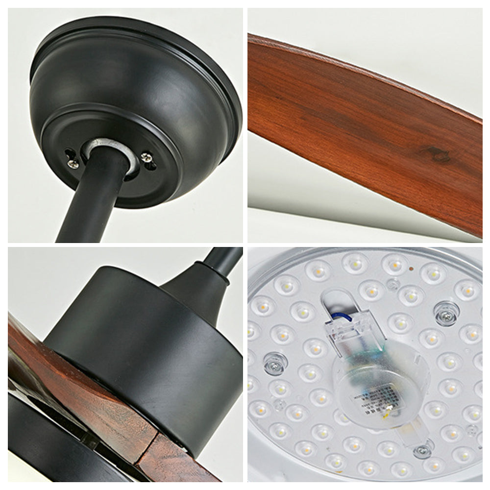 Haydn 3-lapainen moderni DC kattotuuletinvalo, musta ja puu, 52"