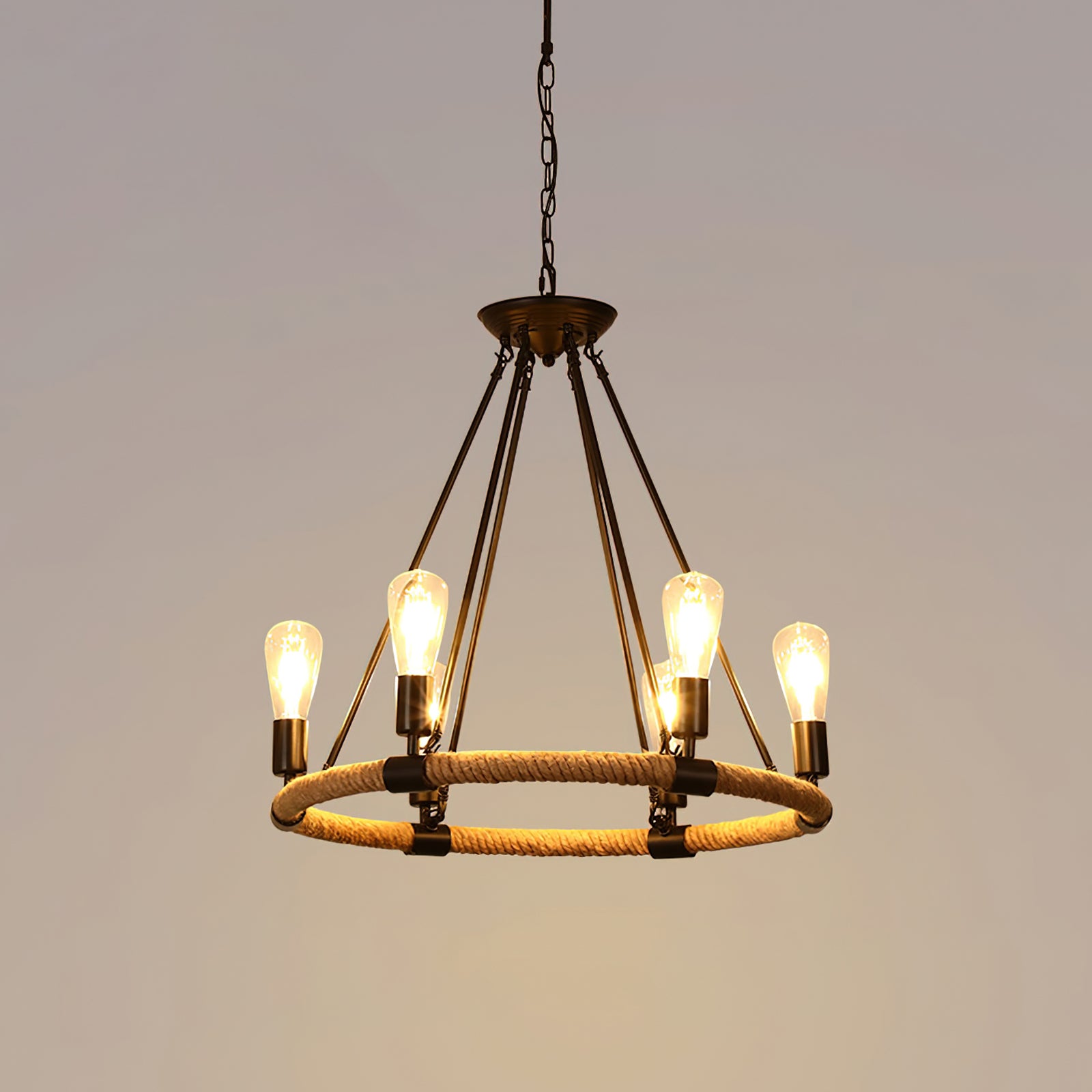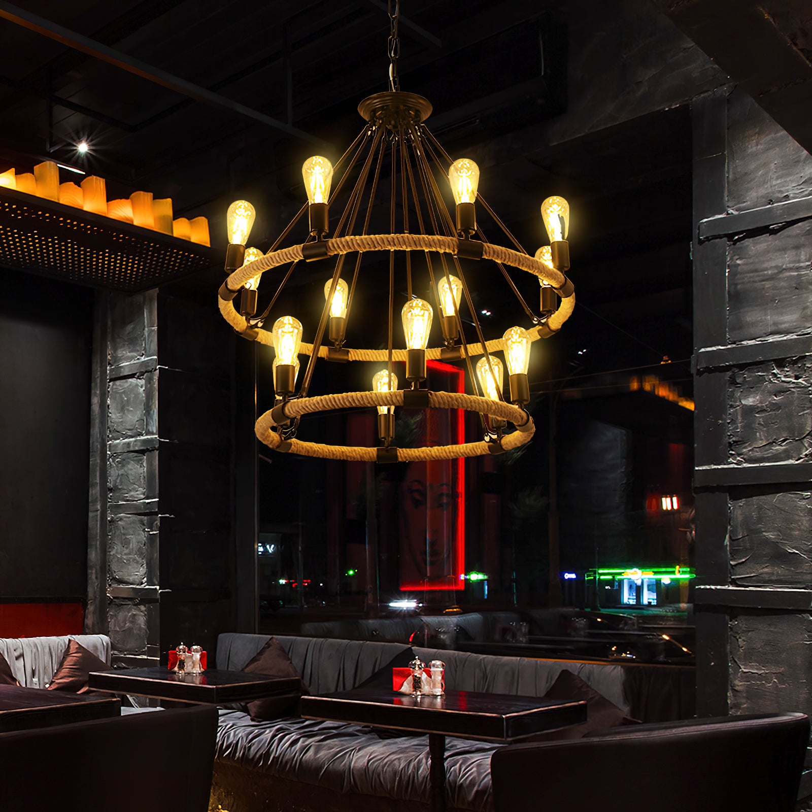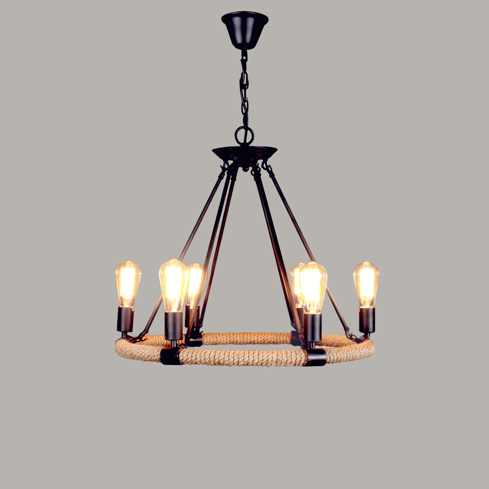 Hamppuköysi teollinen suuri pyöreä kattokruunu