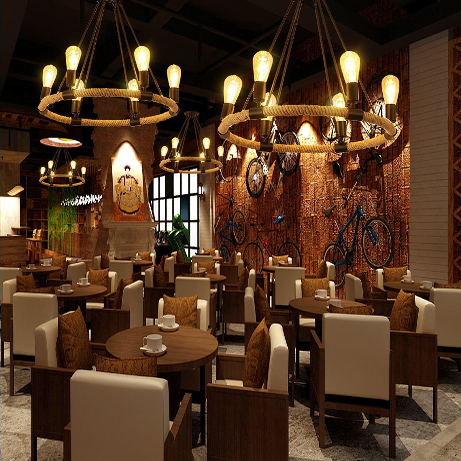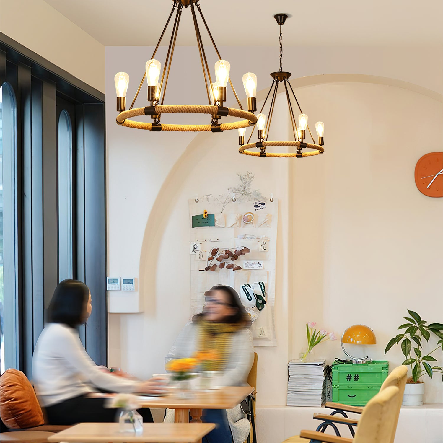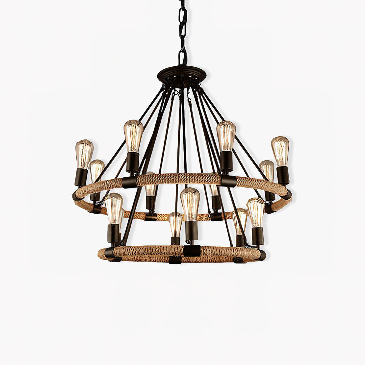 Hamppuköysi teollinen suuri pyöreä kattokruunu