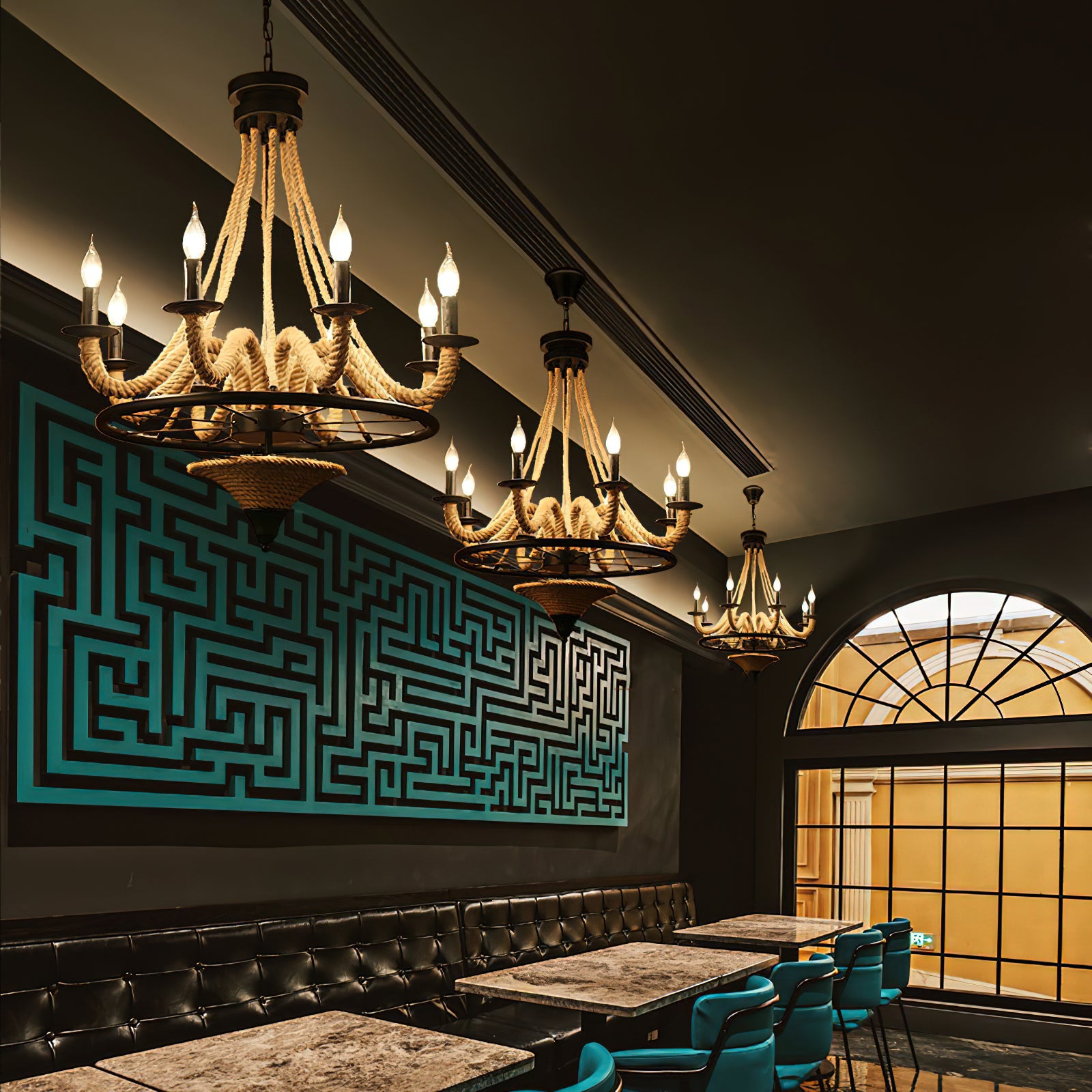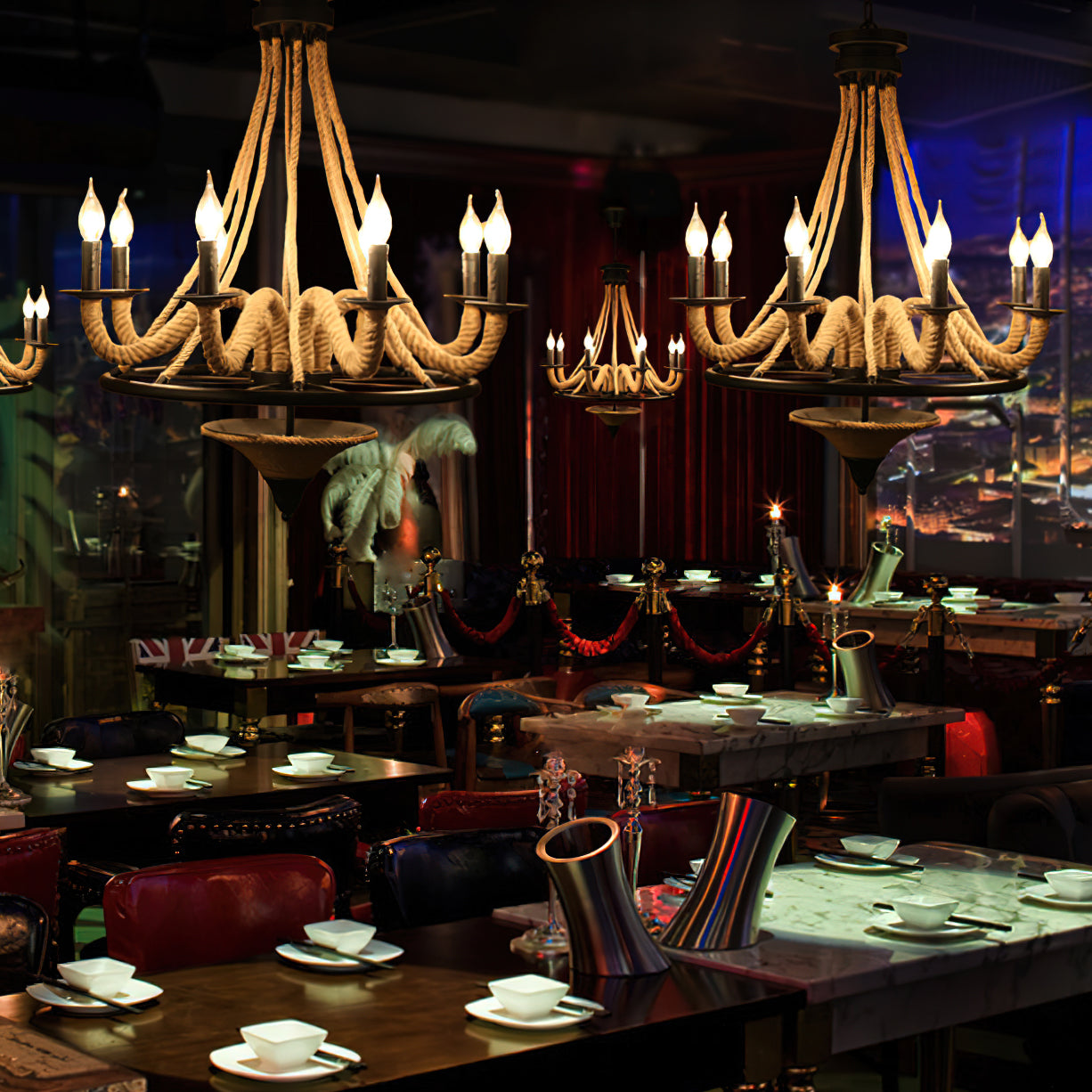 Hamppuköysi teollinen suuren pyörän kattokruunu