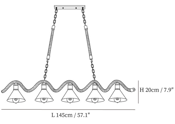 Hamppuköysi Industrial Wave kattokruunu