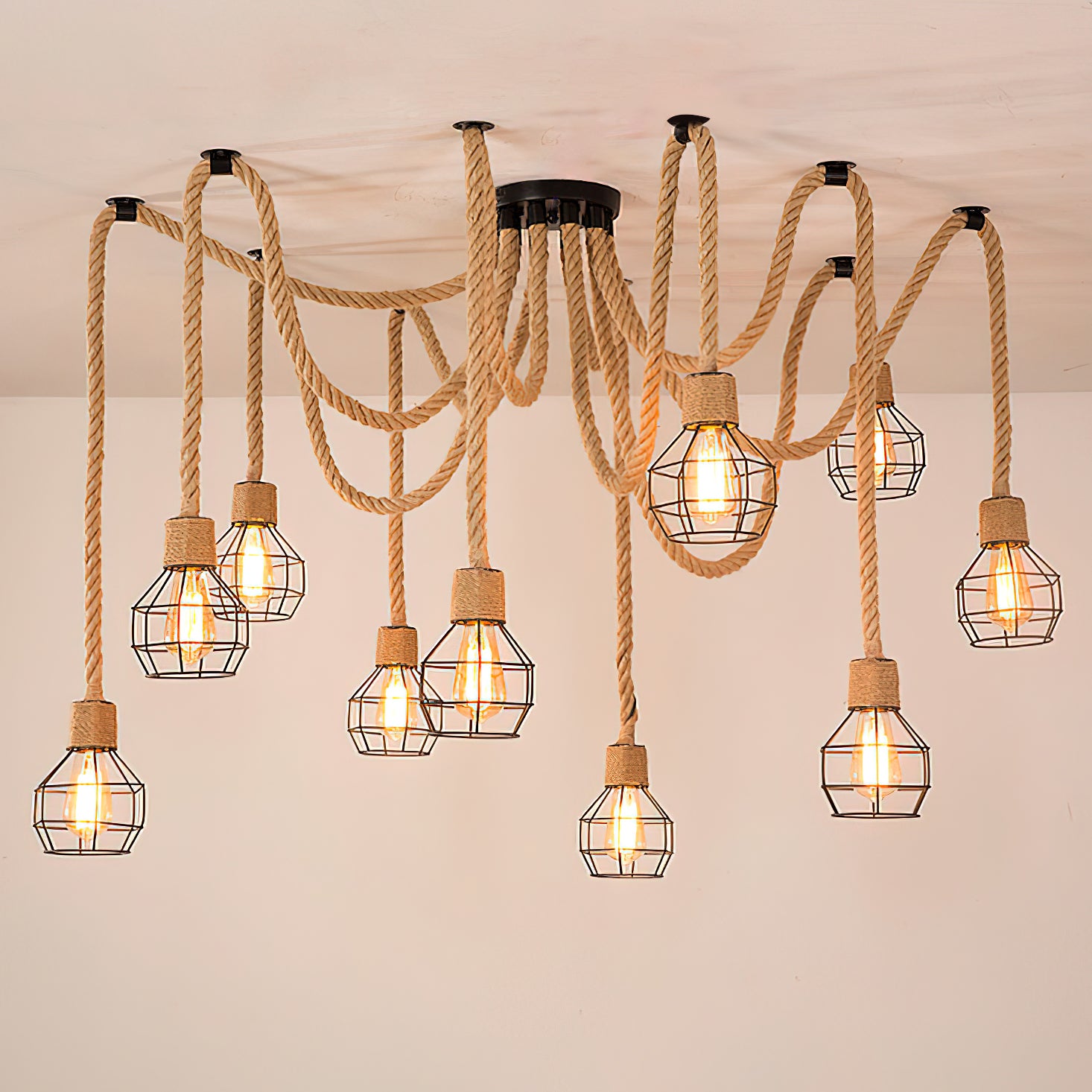 Lisää ripaus klassista viehätysvoimaa mihin tahansa tilaan hamppuköysikukkakruunumme avulla. Tämä luonnonmateriaaleista käsintehty kattokruunu esittelee upeaa retro-teollista tyyliä. Täydellinen baareihin, hotelleihin tai jopa kotitoimistoosi, rautainen kattolevy lisää vahvaa retro-tunnelmaa, joka muistuttaa 1960-lukua. Korosta tilaasi tämän ainutlaatuisen kappaleen jumalattaren hajallaan kukkien tyylillä.