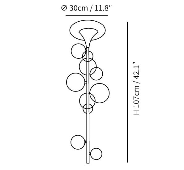 10 Pään koko: Halkaisija 30 cm x K 107 cm / ∅ 11,8″ x K 42,1″