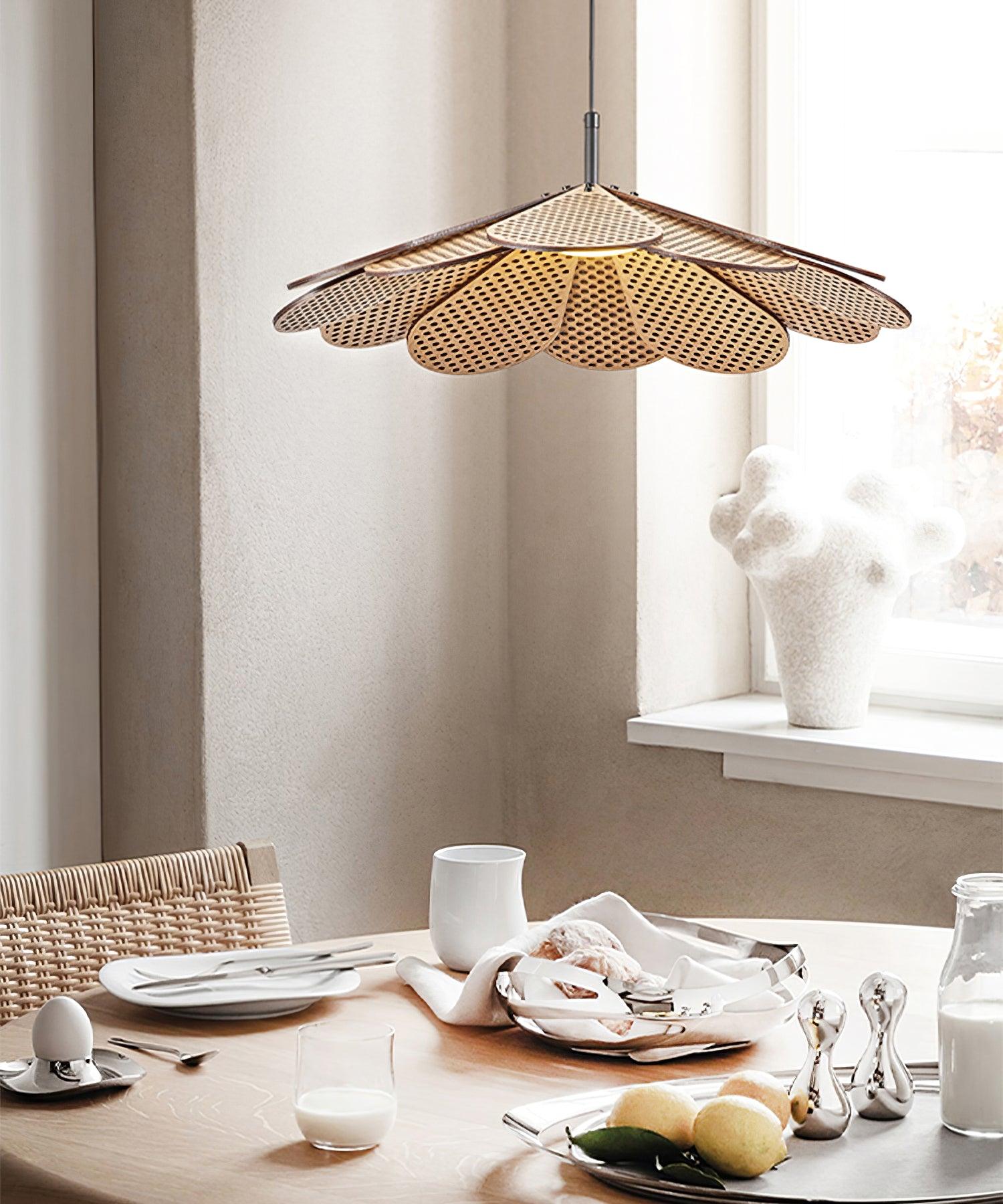 Wabi-Sabi Rattan -riippuvalaisin paljastaa perinteisen japanilaisen Wabi-Sabi-esteettisen filosofian löytää kauneutta hiljaisina aikoina ja löytää jokaisen sekunnin ihme. Löydät sen japanilaisesta teeseremoniasta. Tämä on erittäin ilkeä kaunotar. Useimmat rottinkituotteet heijastavat tätä tyyliä, koska ne käyttävät rottinkia, joka on luonnonvara. Tässä sarjassa ei käytetä kirkkaita värejä ja siinä näkyy alkuperäinen rottinkiviimeistely, mikä antaa sinulle upean tunteen luonnollisesta tunnelmasta.