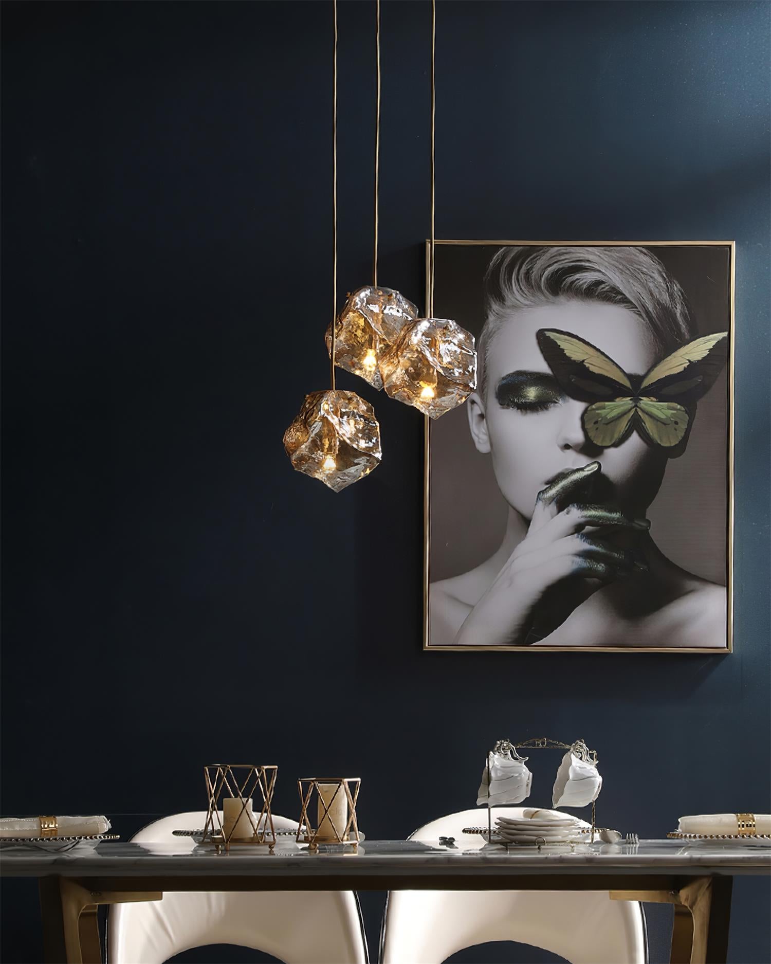 Illyria Ice Glass -riippuvalaisin on eksklusiivinen kappale, joka tuo hienovaraista hienostuneisuutta mihin tahansa ympäristöön. Tämän ainutlaatuisen suupuhalletusta lasista valmistetun riippuvalaisimen muoto on yhtä kiehtova kuin lumoava. Pienen aukon ansiosta valonlähde voidaan sijoittaa huomaamattomasti sisälle, mikä antaa valon kimalteen, joka varmasti kiehtoo.