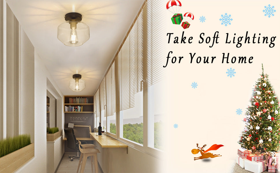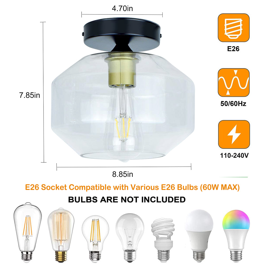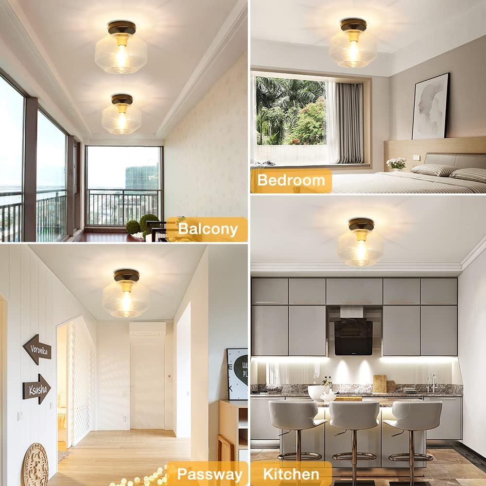DLLT Teollinen osittain upotettava kattovalaisin, kirkas lasivarjostin kattovalaisin, maalaistalon kattovalaistus käytävään, eteiseen, makuuhuoneeseen, käytävään, eteiseen (polttimo ei sisälly)