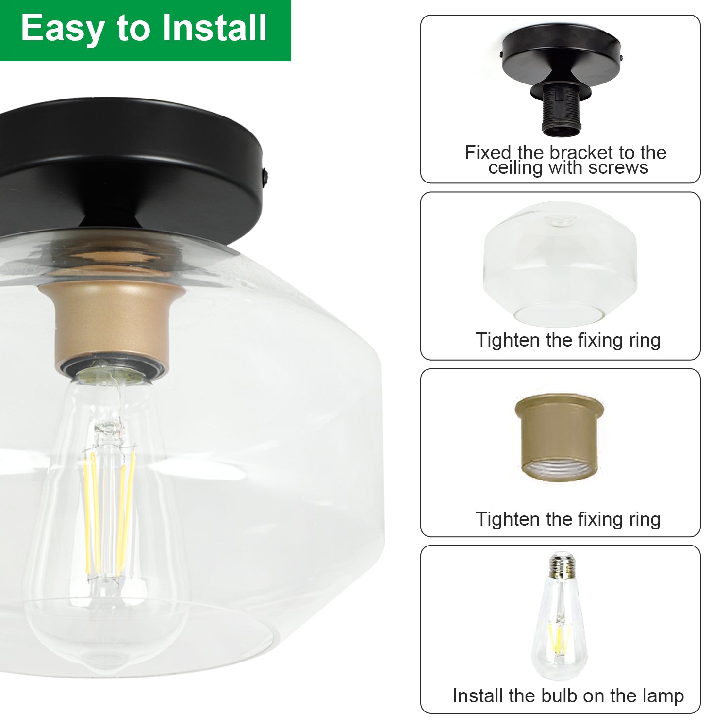 - 3. Himmennettävä kanta- Voit käyttää himmennettävää polttimoa, säätää ja nauttia retro-ilmeen pehmeästä valaistuksesta, luoda haluamasi tunnelman. (Tukee enintään 60 W.)