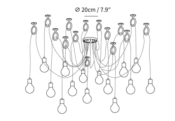 Tarjoamme 150 cm:n kaapelin useimmille lampuille. Jos haluat pidemmän kaapelin (800cm sisällä), ilmoita tilausta tehdessäsi, jatkamme kaapelia ilmaiseksi.