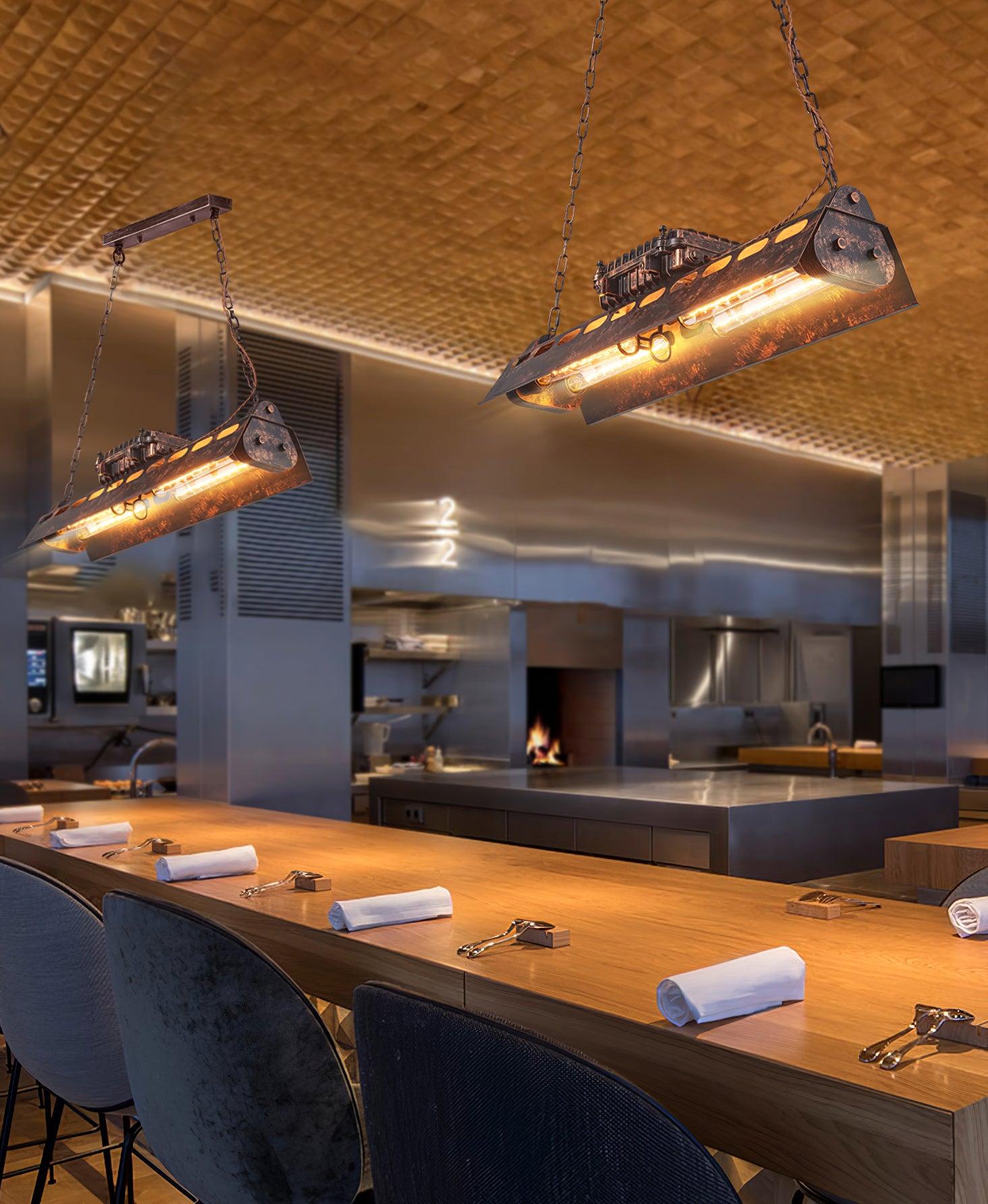 Tuo kotiisi hienostuneisuutta tällä riippuvalaisimella, tuo vaivattomasti vintage-elementtejä teolliseen tyyliin! Tämä tyylikäs riippuvalaisin, jossa on suorakaiteen muotoinen ruosteinen metallikehys, jossa on ontot yksityiskohdat ja ainutlaatuinen laatikko, tuo sisustukseesi teollisen viehätyksen ja vintage-glamouria. Metallirungon alla on useita Edison-polttimoja (ei sisälly toimitukseen), jotka tuovat kirkasta valoa luoden rauhallisen ja miellyttävän tunnelman.