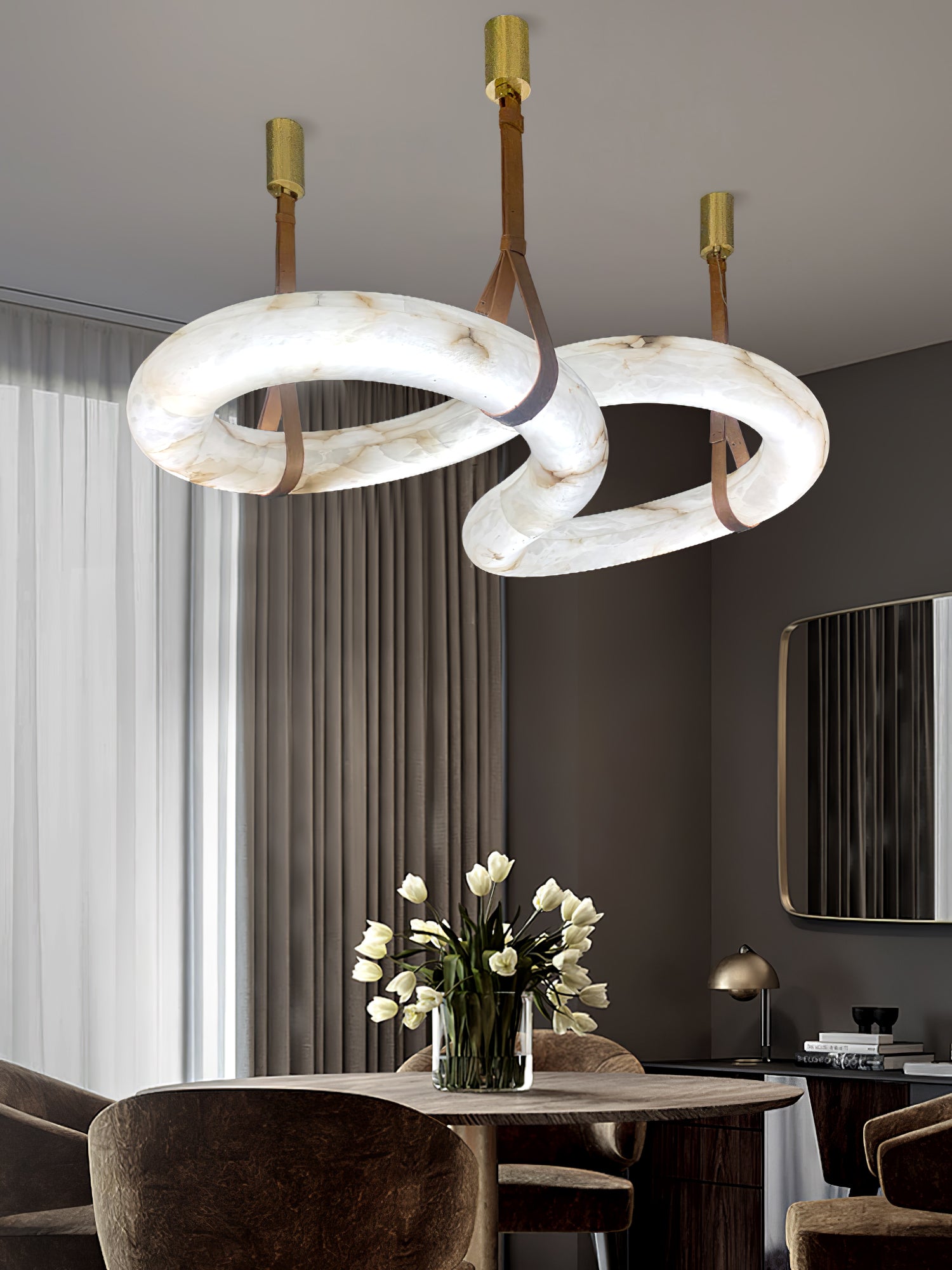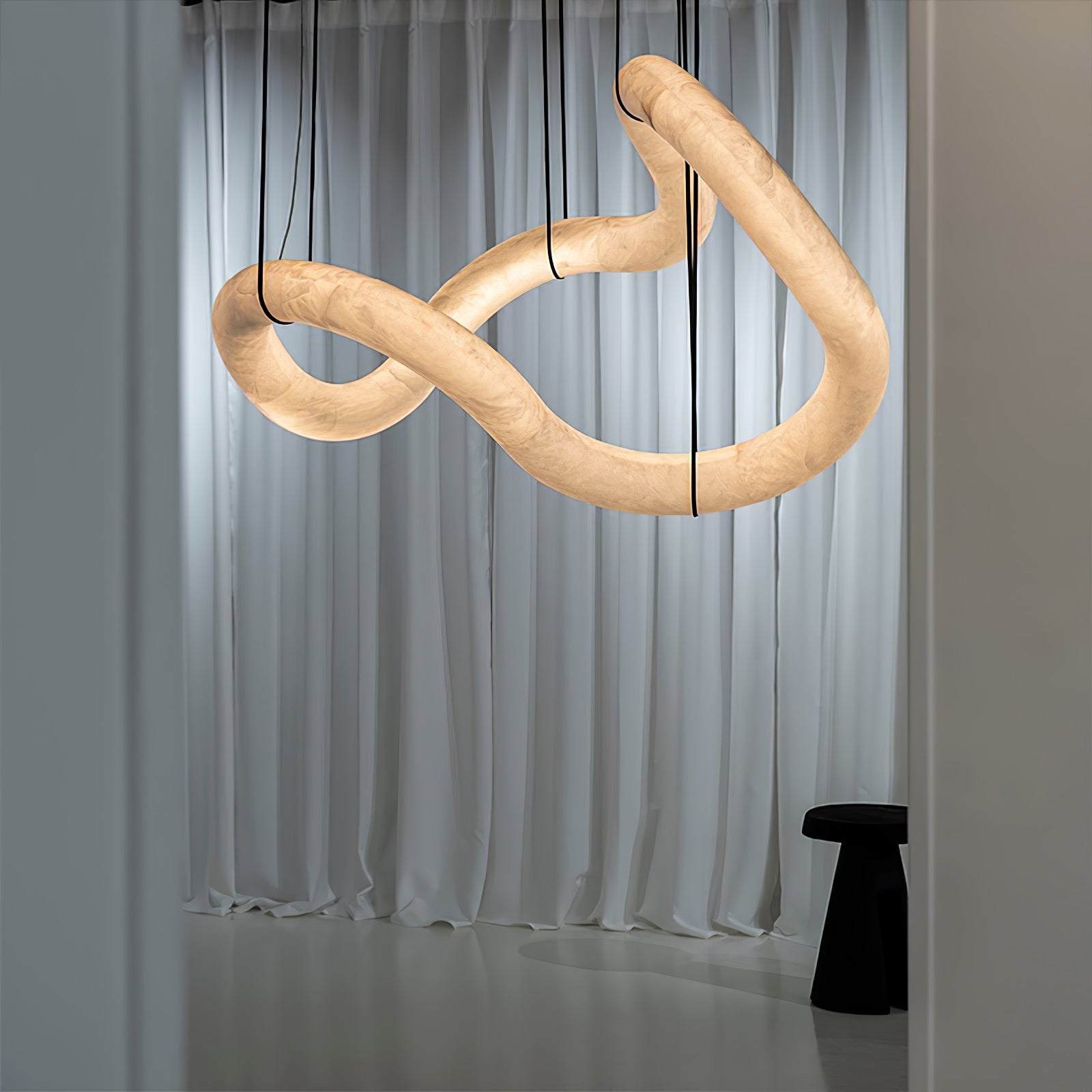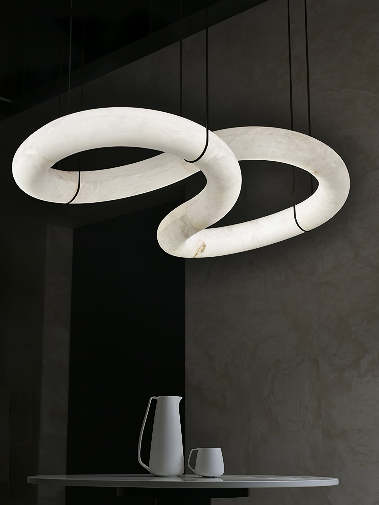 Infinity-riippuvalaisin tutkii tasapainoa ja veistoksia, ja siinä on tyylikäs suljetun silmukan rakenne, joka muistuttaa äärettömyyden matemaattista symbolia. Tästä alabasterista valmistetusta upeasta lampusta tulee varmasti huoneen keskipiste, joka säteilee ajatonta ja ääretöntä valoa.