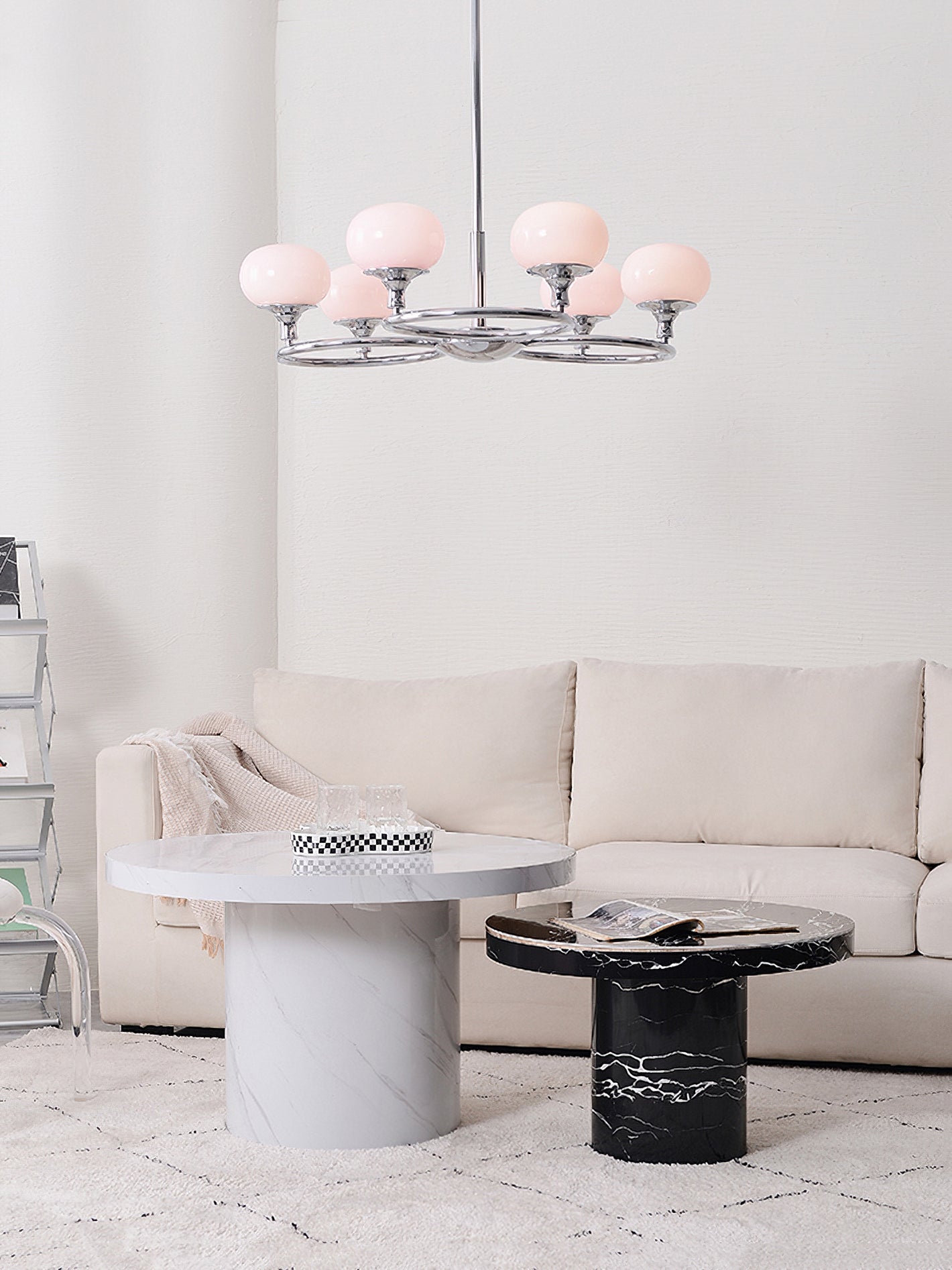 Lisäksi tämä kattokruunu tarjoaa monipuolisuutta lampunvarjostimien värien suhteen. Saatavilla olevat vaihtoehdot ovat beige, pinkki ja valkoinen. Beige sävy lisää lämpöä ja hienostuneisuutta luoden kutsuvan tunnelman. Vaaleanpunainen sävy tuo ripauksen leikkisyyttä ja viehätysvoimaa, joka on täydellinen luomaan hassu tunnelma. Valkoinen sävy tarjoaa puhtaan ja tyylikkään ilmeen, joten se sopii moderniin tai minimalistiseen ympäristöön. Minkä värin valitsetkin, kattokruunun lampunvarjostin parantaa tilan yleistä estetiikkaa.
